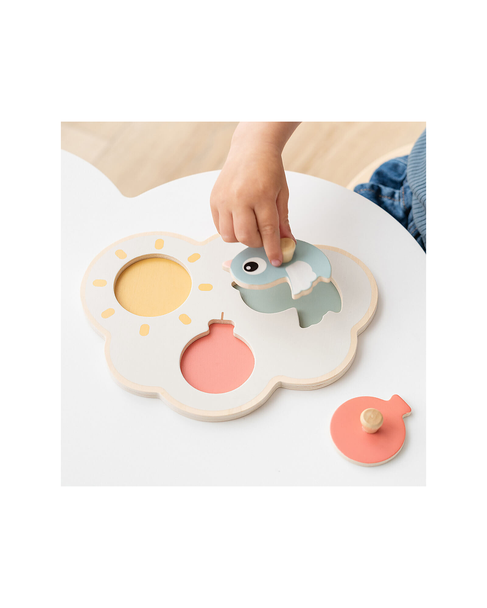 Done By Deer has create thsi set for the very little ones. This Peg Puzzle is composed by Birdee, the sun and a balloon. For a very endless fun