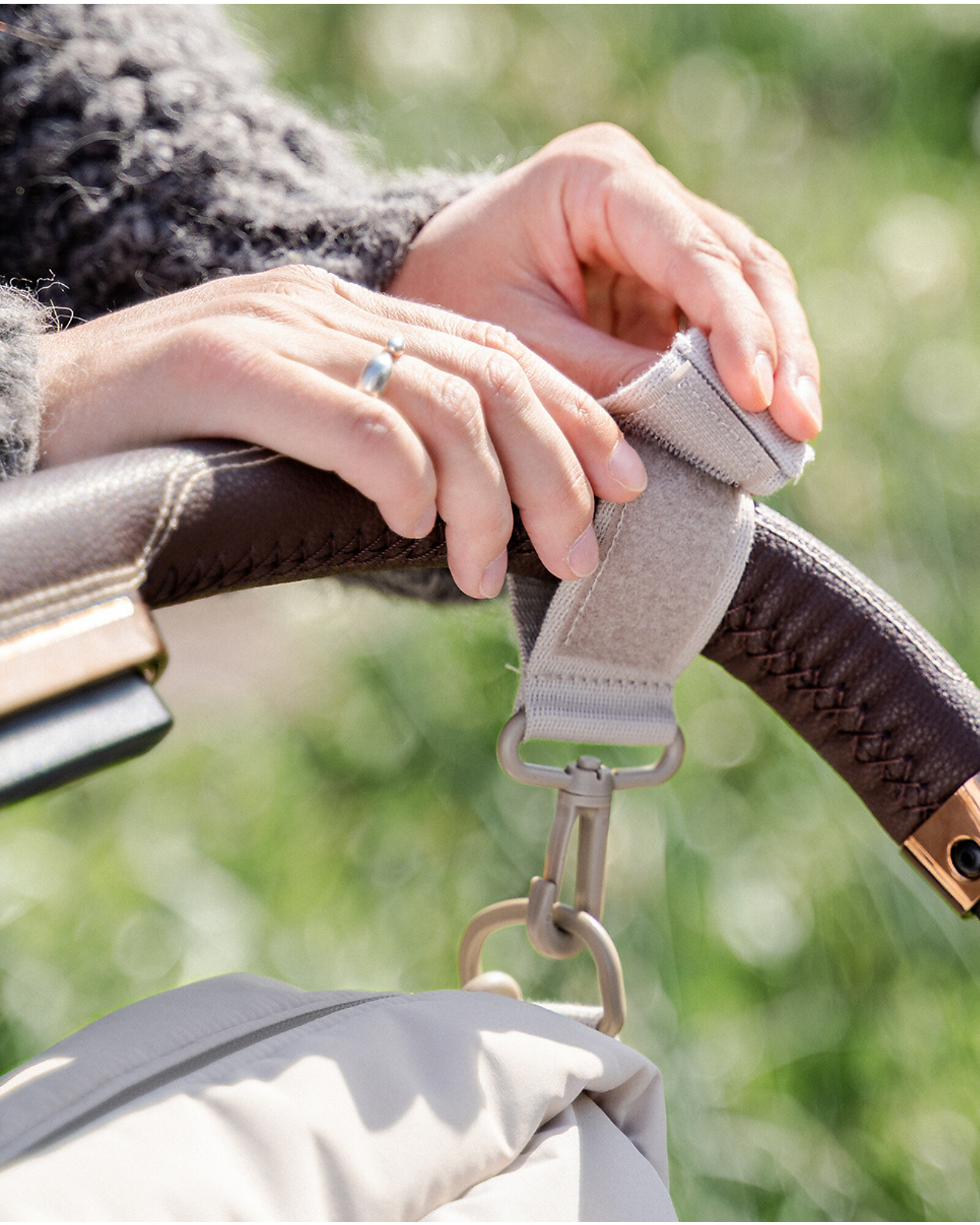 This quilted stroller bag is the perfect accessory for parents on the go. Made from soft yet durable and water-repellent fabric, it is ideal for carrying all the essentials for diaper changes. The exterior features convenient pockets to keep everything within easy reach. The adjustable shoulder strap ensures comfortable carrying, and the hooks allow for easy attachment to the stroller. The modern, neutral design suits any style.