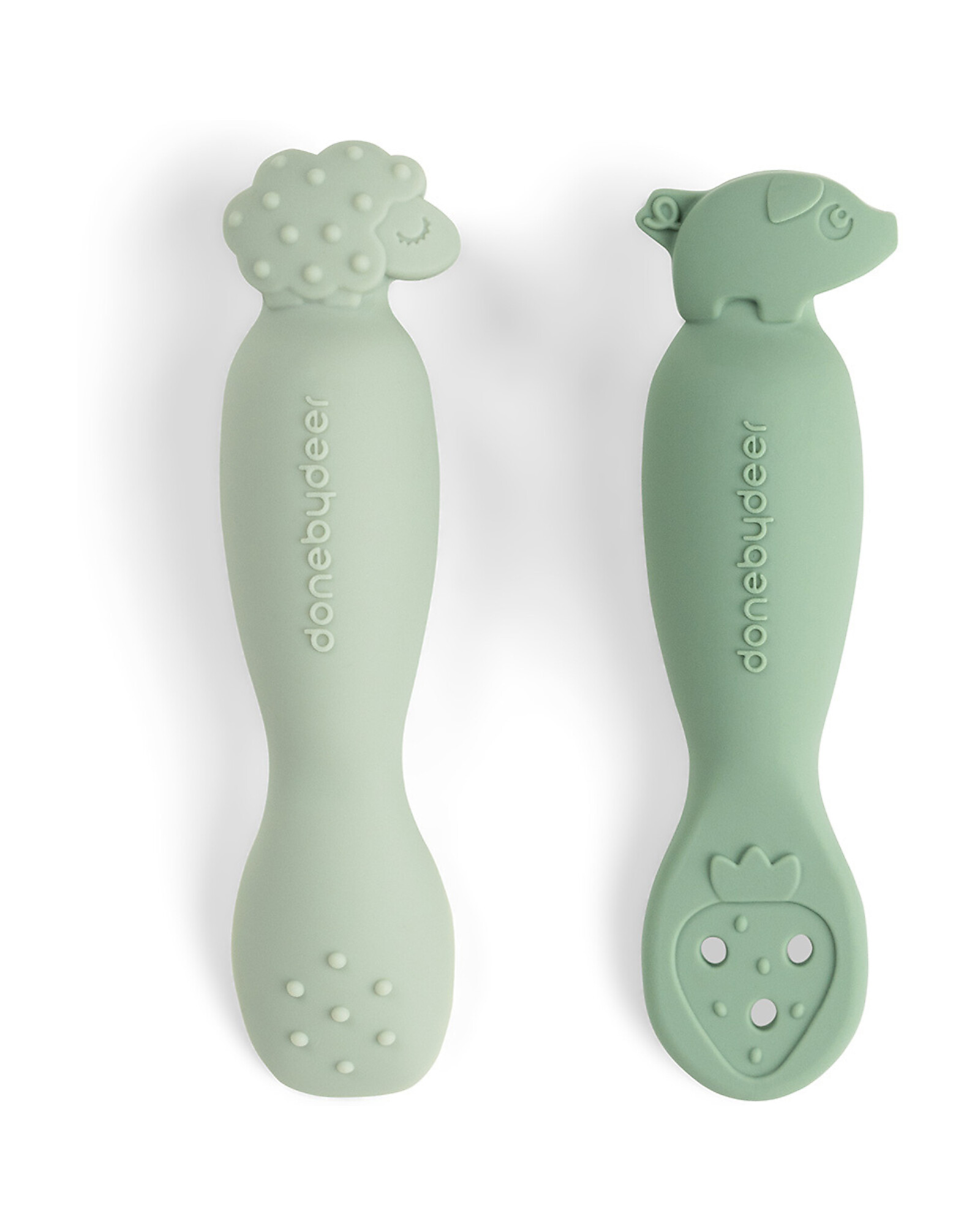 Set of 2 Learning Silicone Spoons - Tiny Farm - Green
