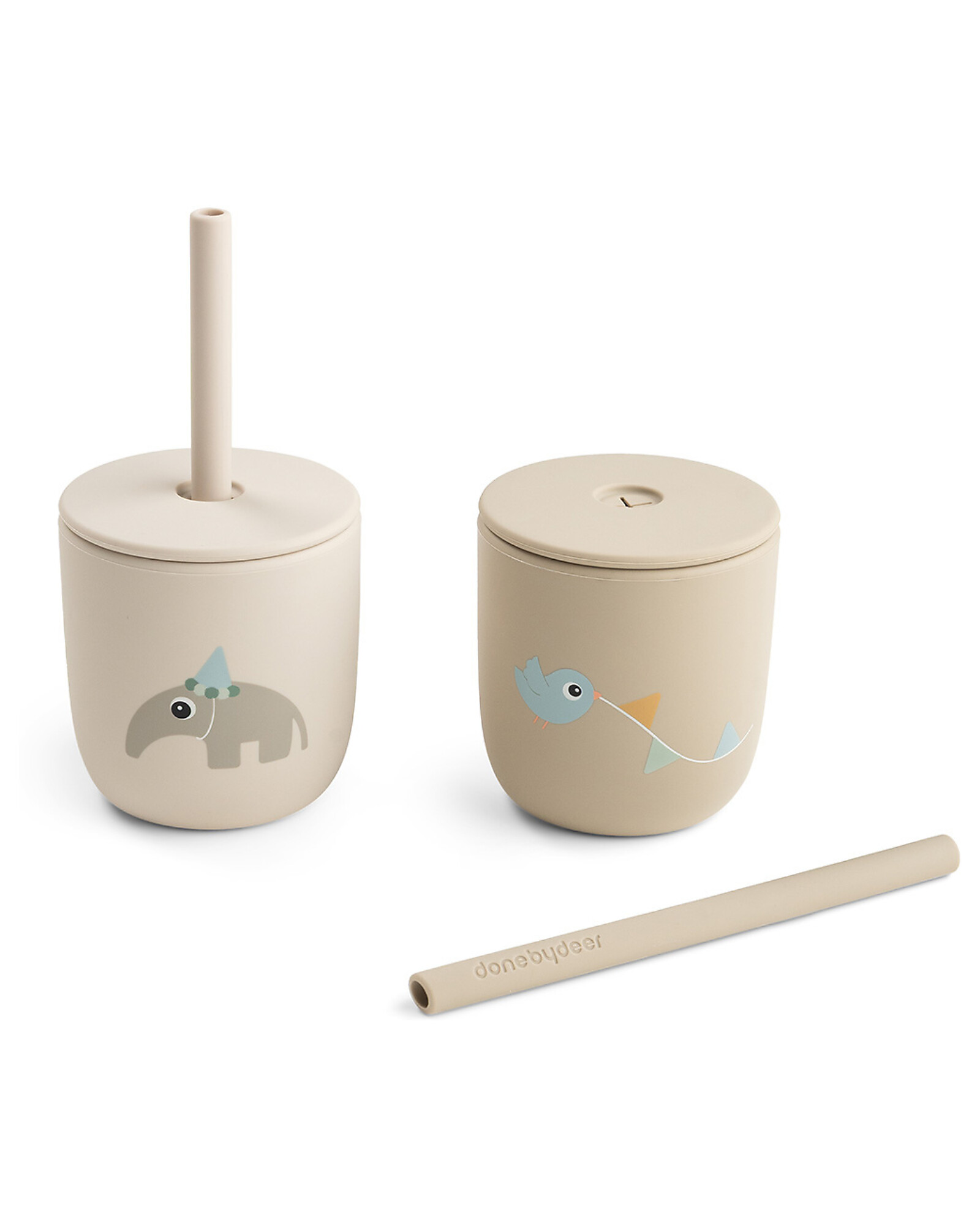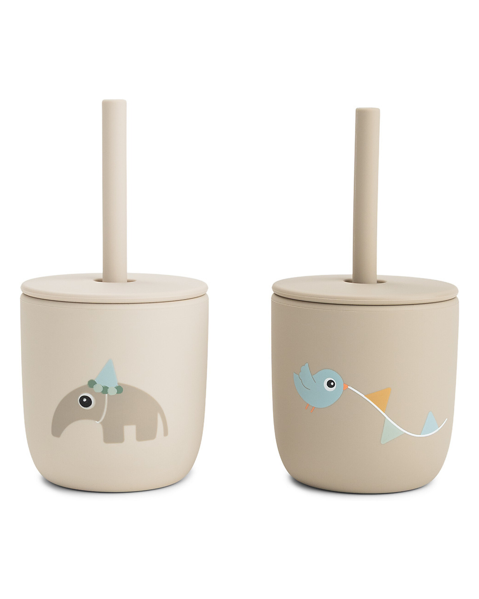 Set of 2 Straw Cup 120 ml - Celebration - Sand - 100% Food Grade Silicone - 12m+