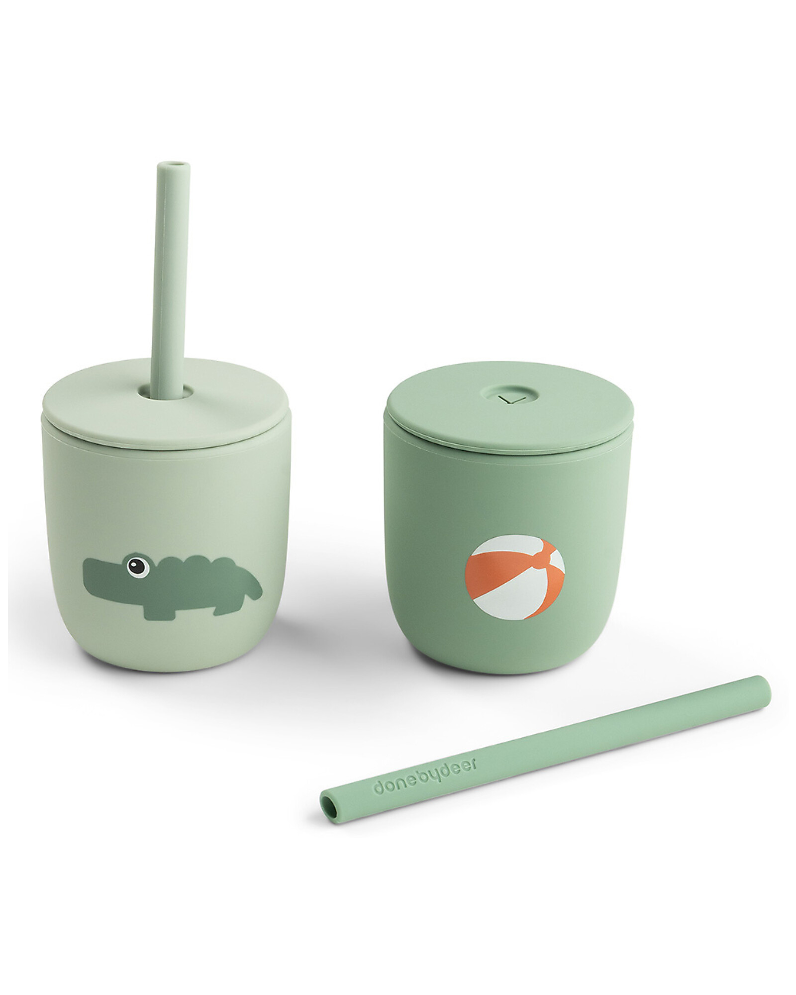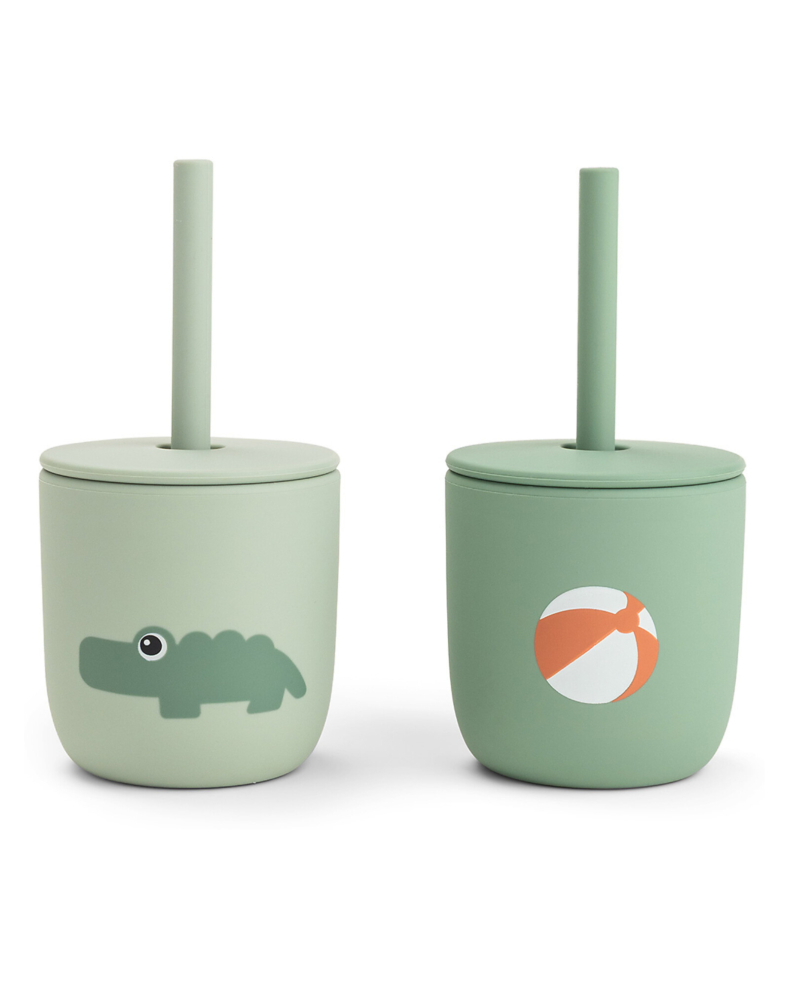 Set of 2 Straw Cup 120 ml - Playground - Green - 100% Food Grade Silicone - 12m+