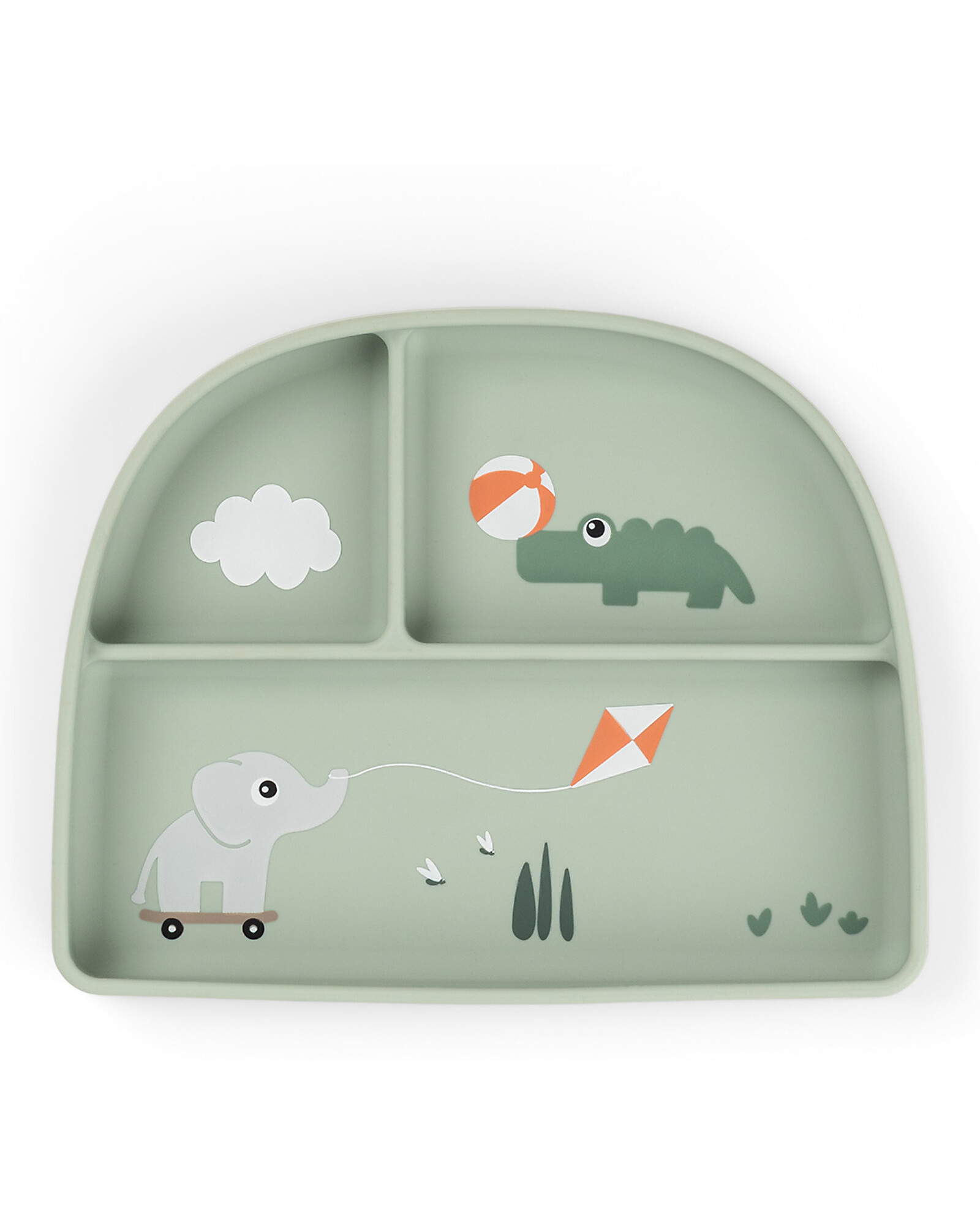 Stick&Stay Compartment Plate - Playground - Green - 100% Food Grade Silicone