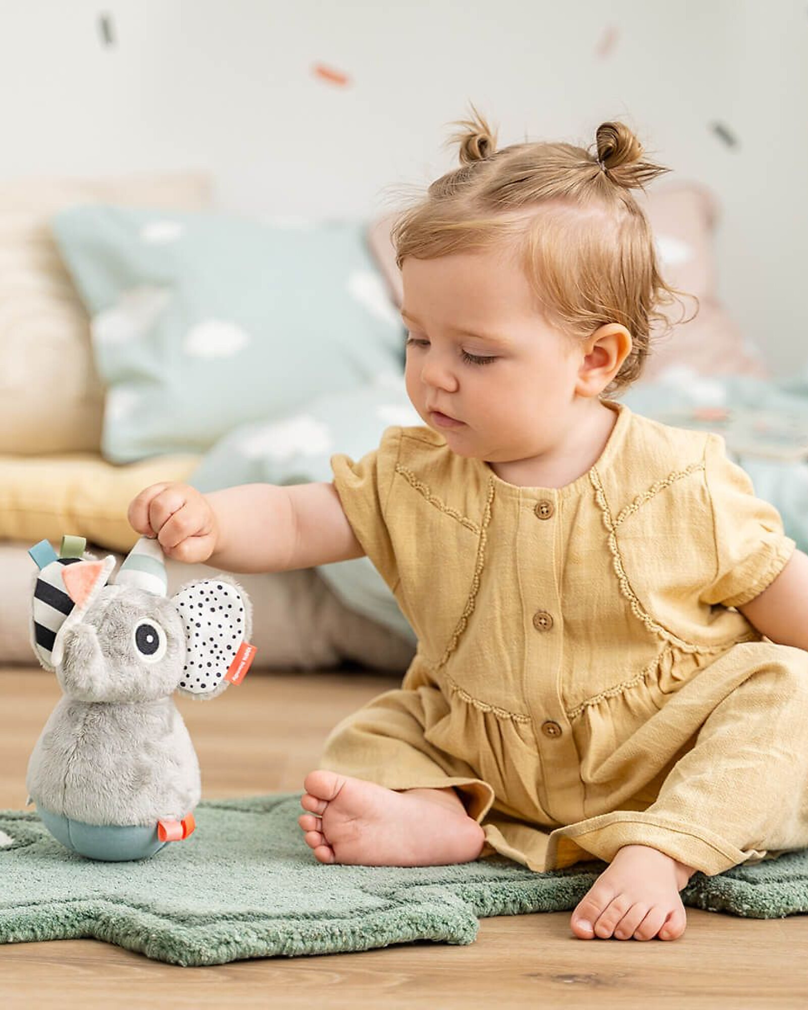 - Keeps little ones engaged during tummy time.