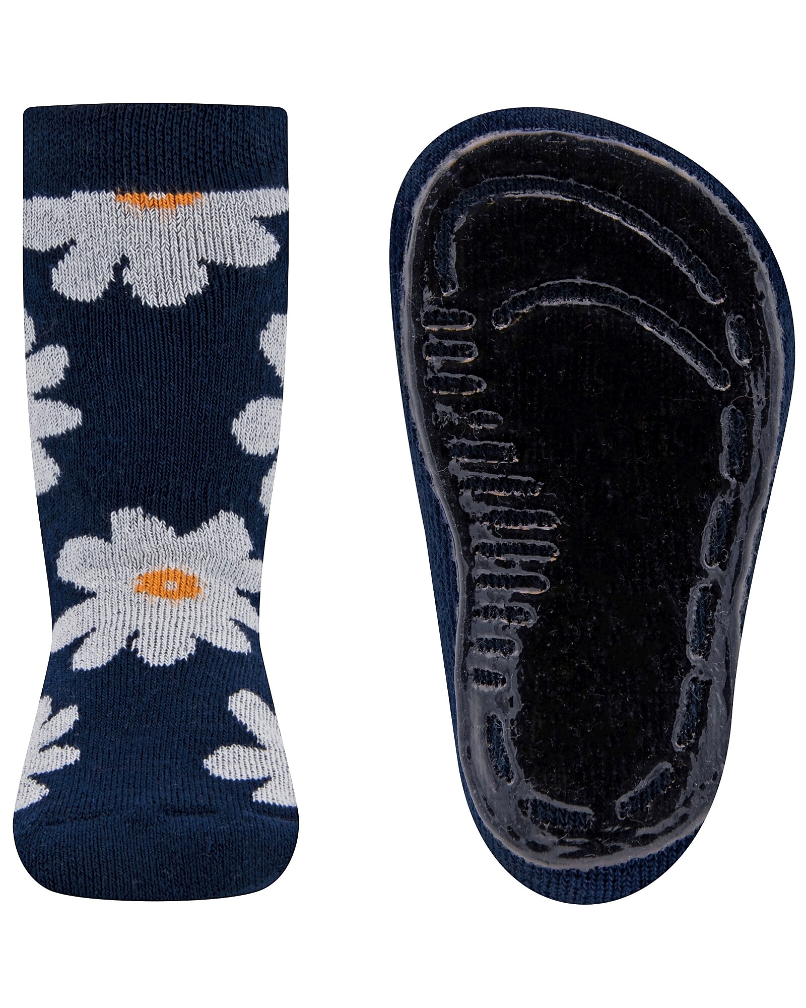 SoftStep Non-Slip Socks - Flowers - Cotton - Navy
