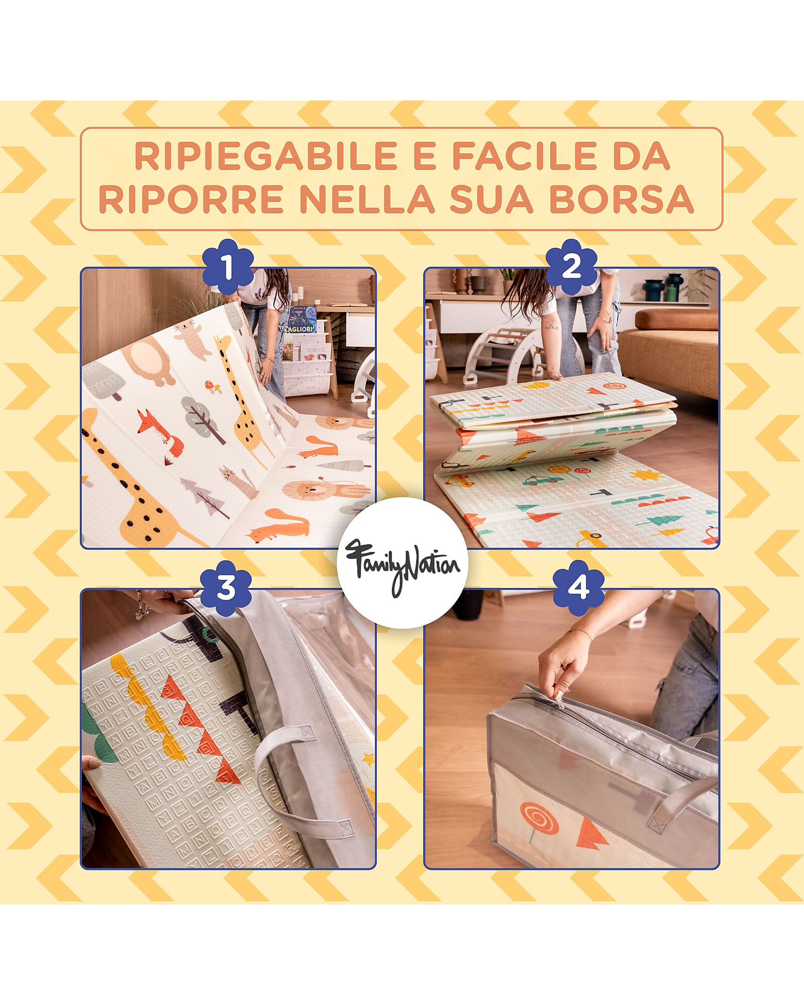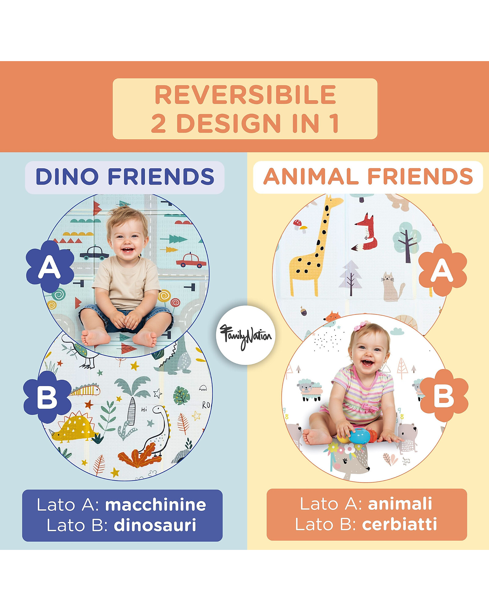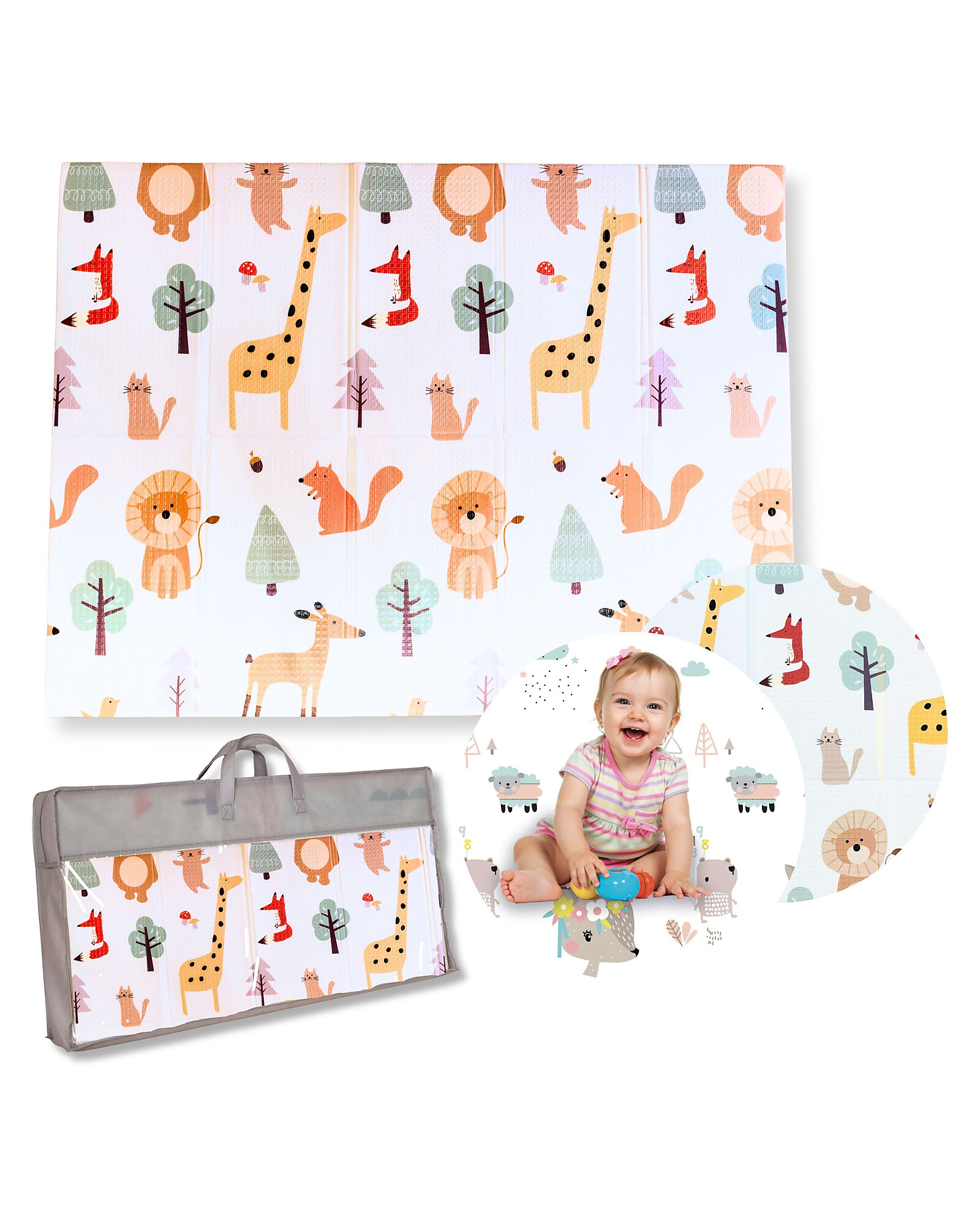 2-in-1 Foldable Montessori Play Mat – Reversible and Soft – Animal Friends – 180x150 cm – From Birth
