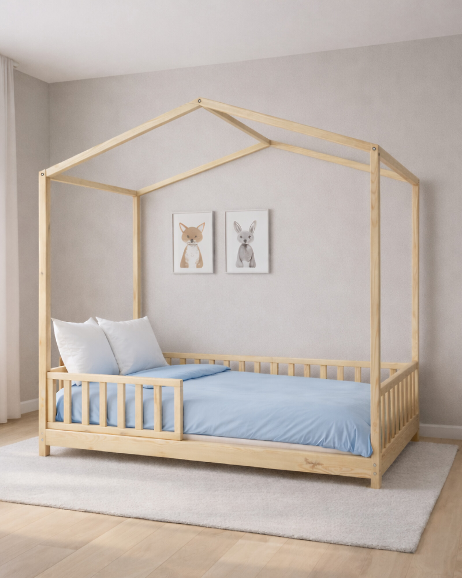 - All-in-one solution – The kit includes bed, rails, house roof frame, slats, and legs: no additional components to purchase. Practical and cost-effective.