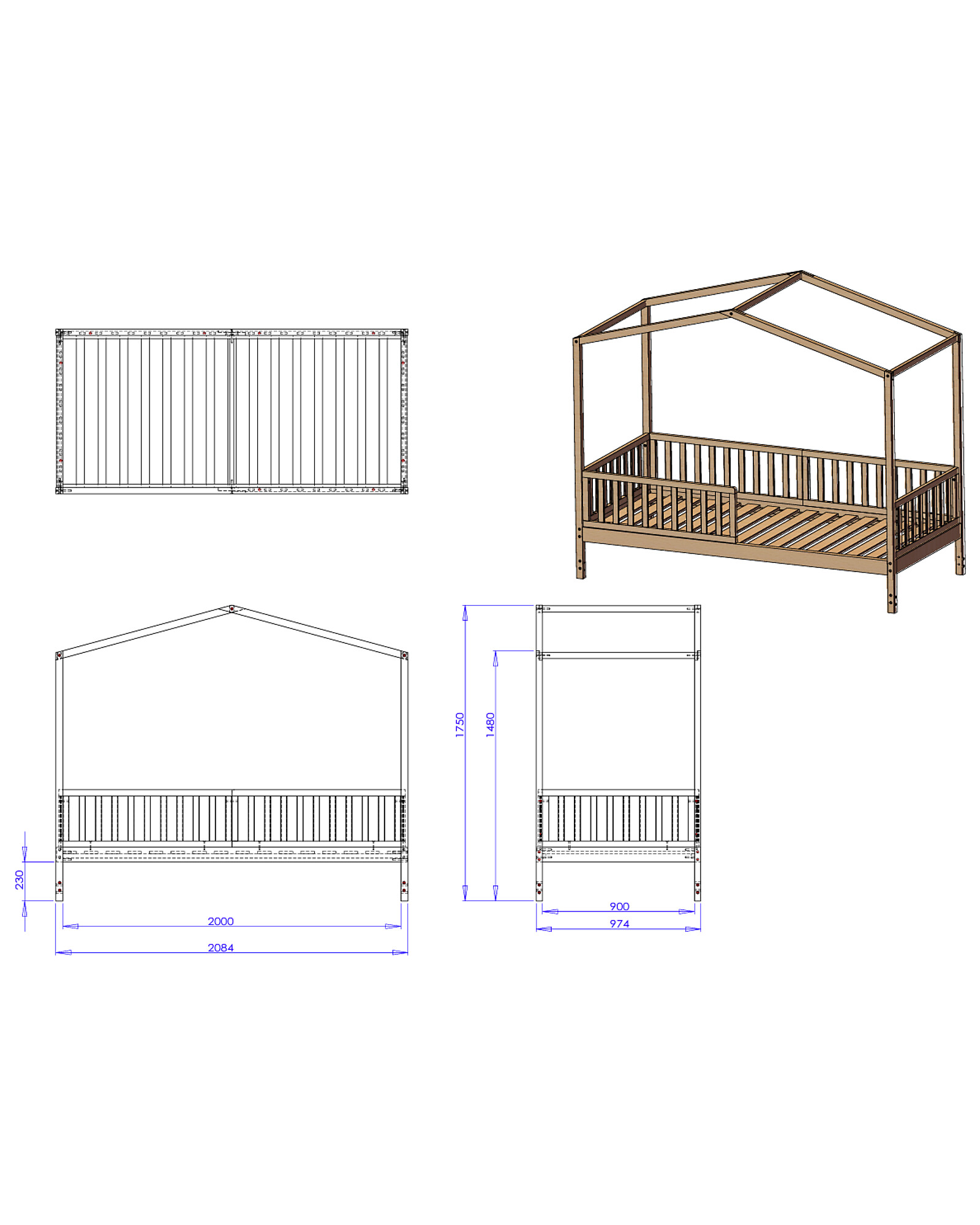 - All-inclusive – The kit includes bed, rails, house roof, slats, and legs: no components need to be purchased separately. Practical and cost-effective.