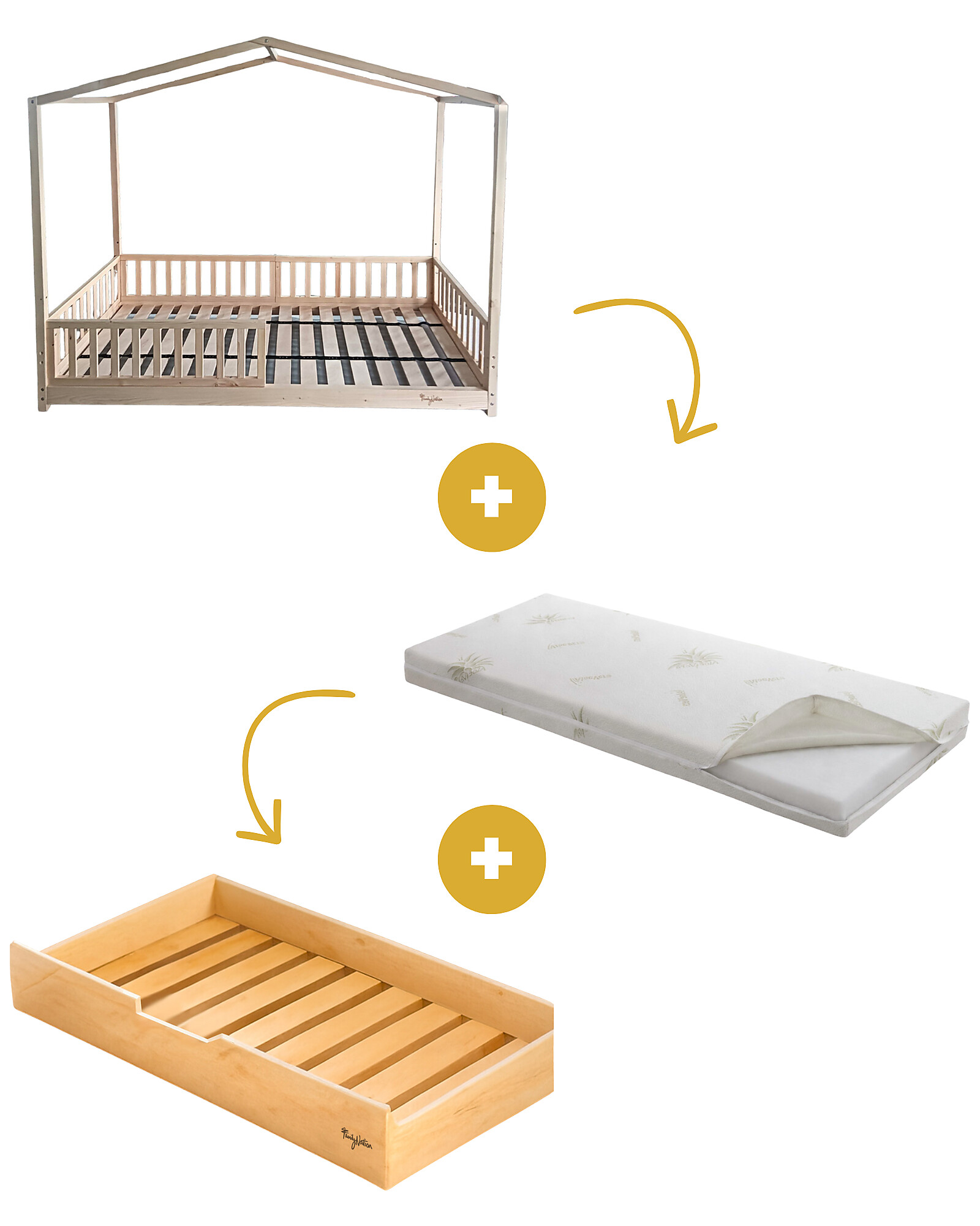 Set 3: Evi Convertible Montessori Bed 200x90cm + Bed/Drawer + 12cm Aloe Vera Mattress
