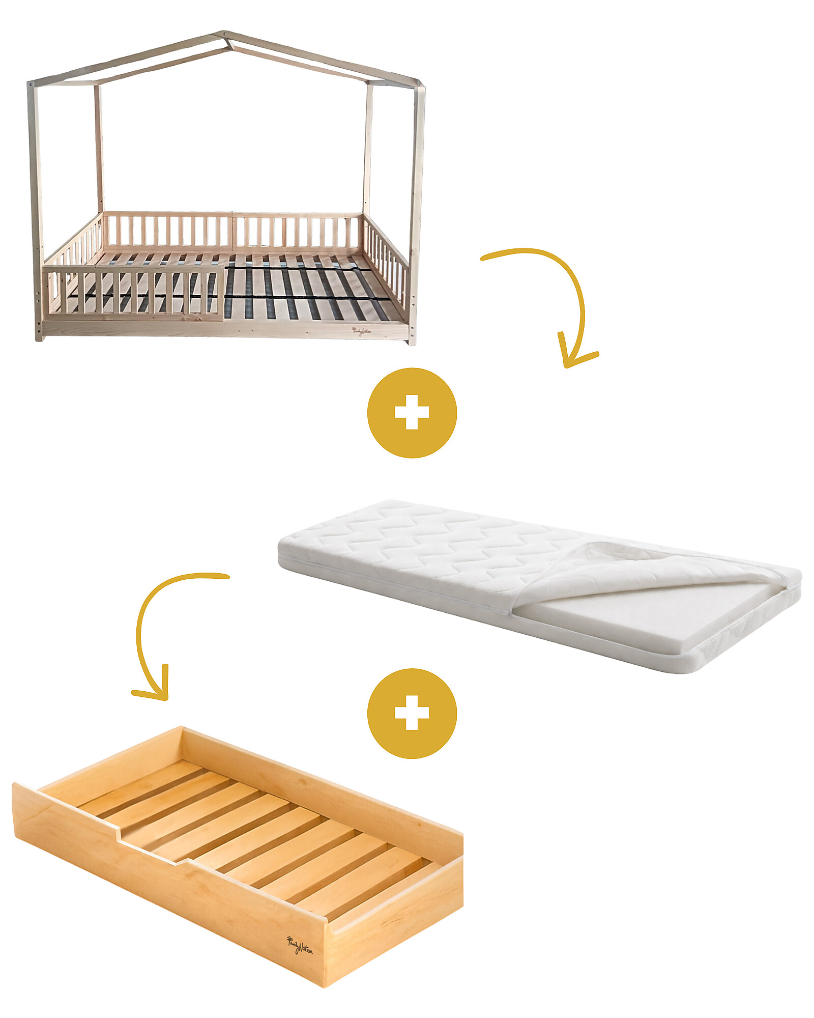 Set 3: Evi Convertible Montessori Bed 200x90cm + Bed/Drawer + 14cm Antimite Mattress