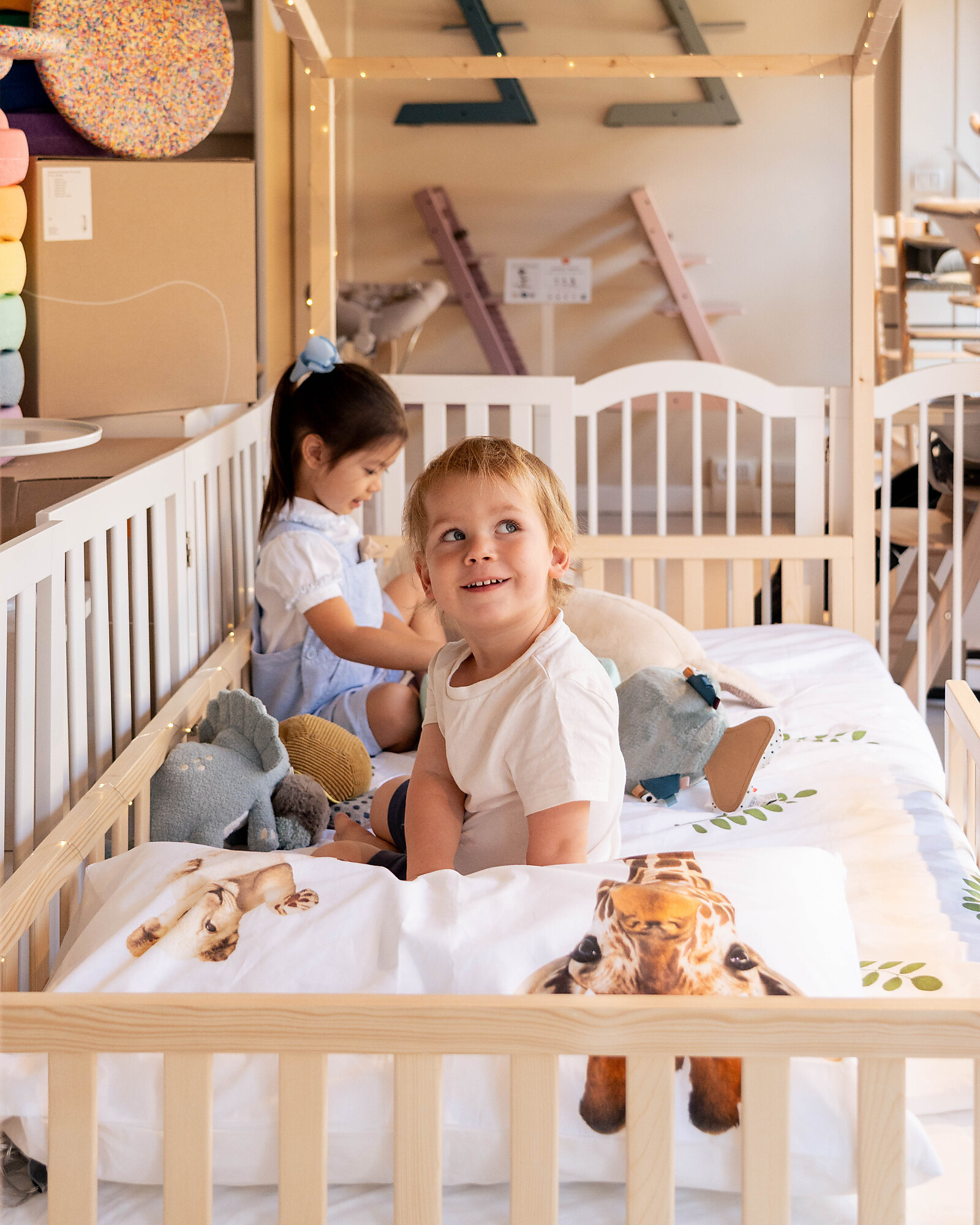 The Evi 4-in-1 Montessori Evolving Bed and the Evi 2-in-1 Montessori Pull-out Bed and Storage Drawer are two smart, space-saving solutions designed to accompany your family's growth, ensuring quality, beautiful design, and sustainability. Both components are designed to adapt to the ever-changing needs of children, offering comfort, safety, and practicality from day one to adulthood.