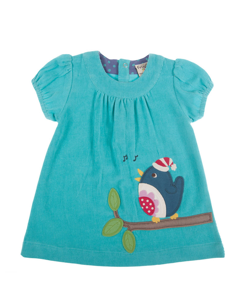 Your little girl will look absolutely irresistible with this wonderful Little Chloe Cord Dress by Frugi! Brightness, functionality and extreme softness for a beautiful multi seasonal outfit: worn with a pair of leggings or tights, with a long sleeved body or even alone, it will be ideal for any occasion and perfect in autumn, winter and even spring! In 100% Organic Cotton, gentle to the skin and the environment, it is decorated with a pretty bird applique design and closes behind the neck with small nickel-free poppers for easy dressing. Complete the look with Frugi colored tights! Ideal as a Christmas or festive outfit!