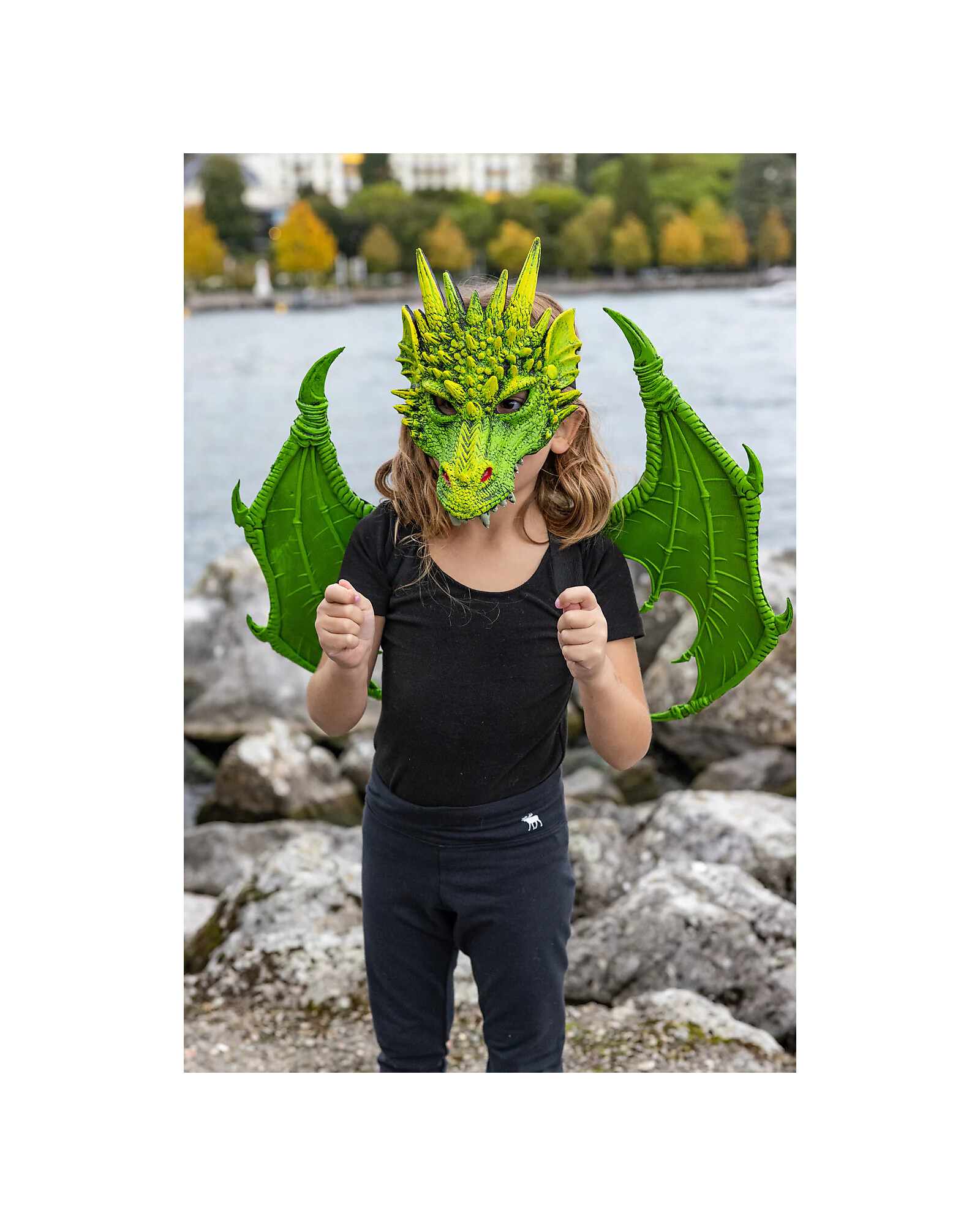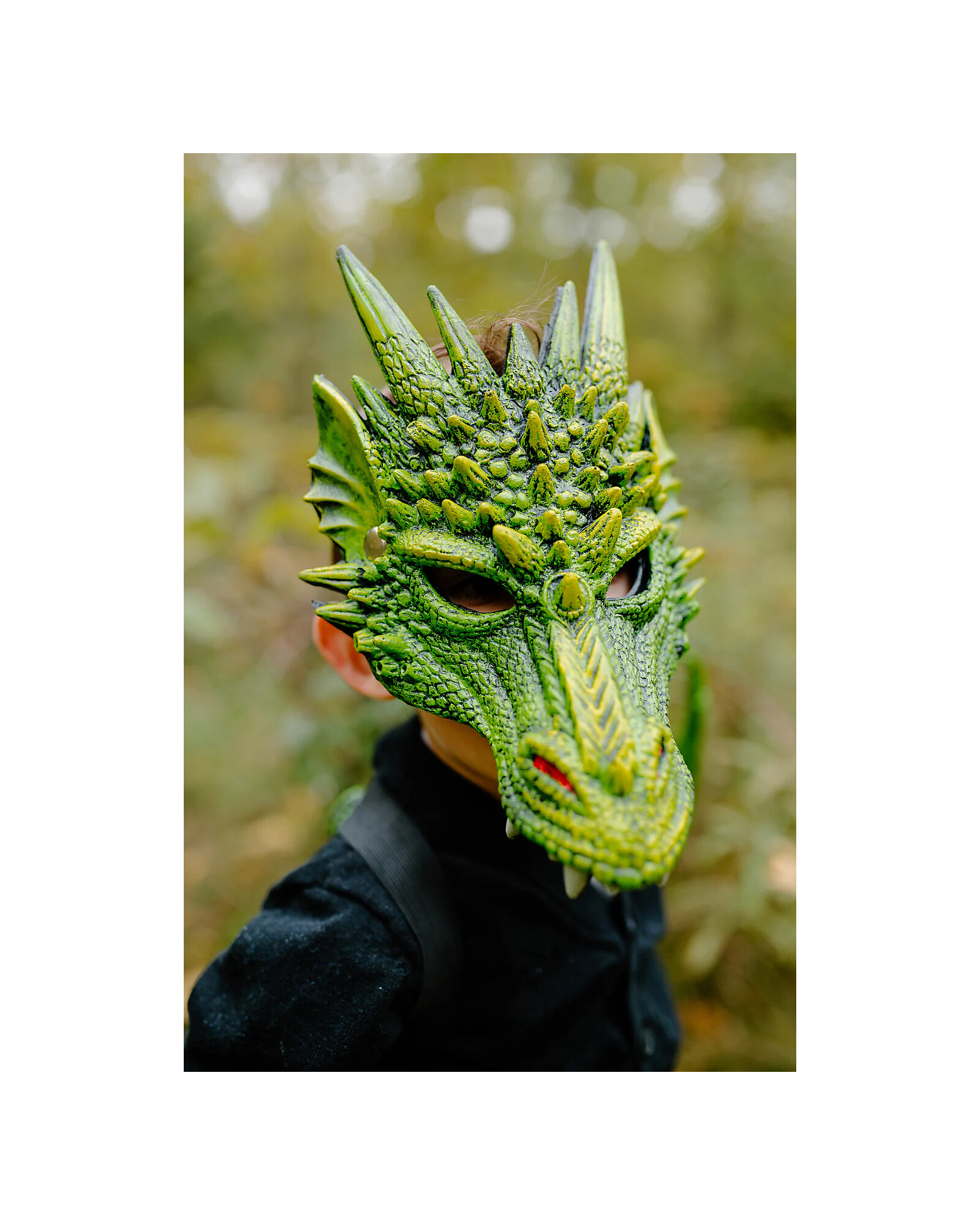 Details inspired by mythical creatures, combined with a deep green color, make this mask eye-catching and distinctive—ideal for enhancing dress-up and role play. Lightweight and comfortable, it’s designed to be worn for extended play without discomfort, allowing children to move freely and express themselves.