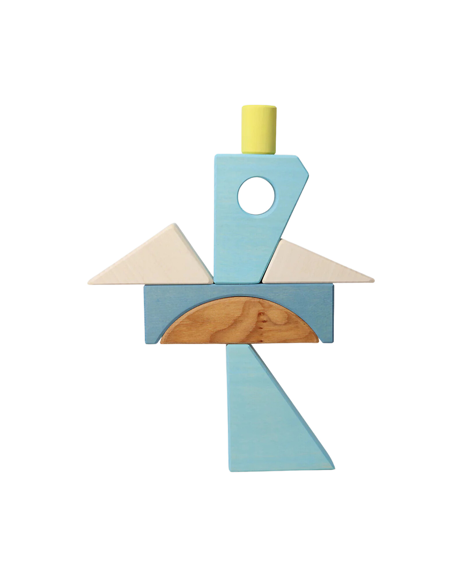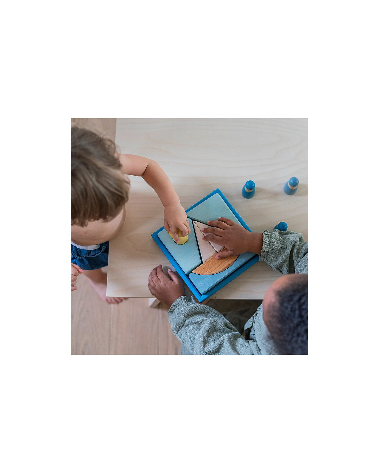 The Blue Building Set is perfect for small hands thanks to its large pieces. The different shades offer a first introduction to primary and secondary colours, inviting children to explore their combinations and effects.