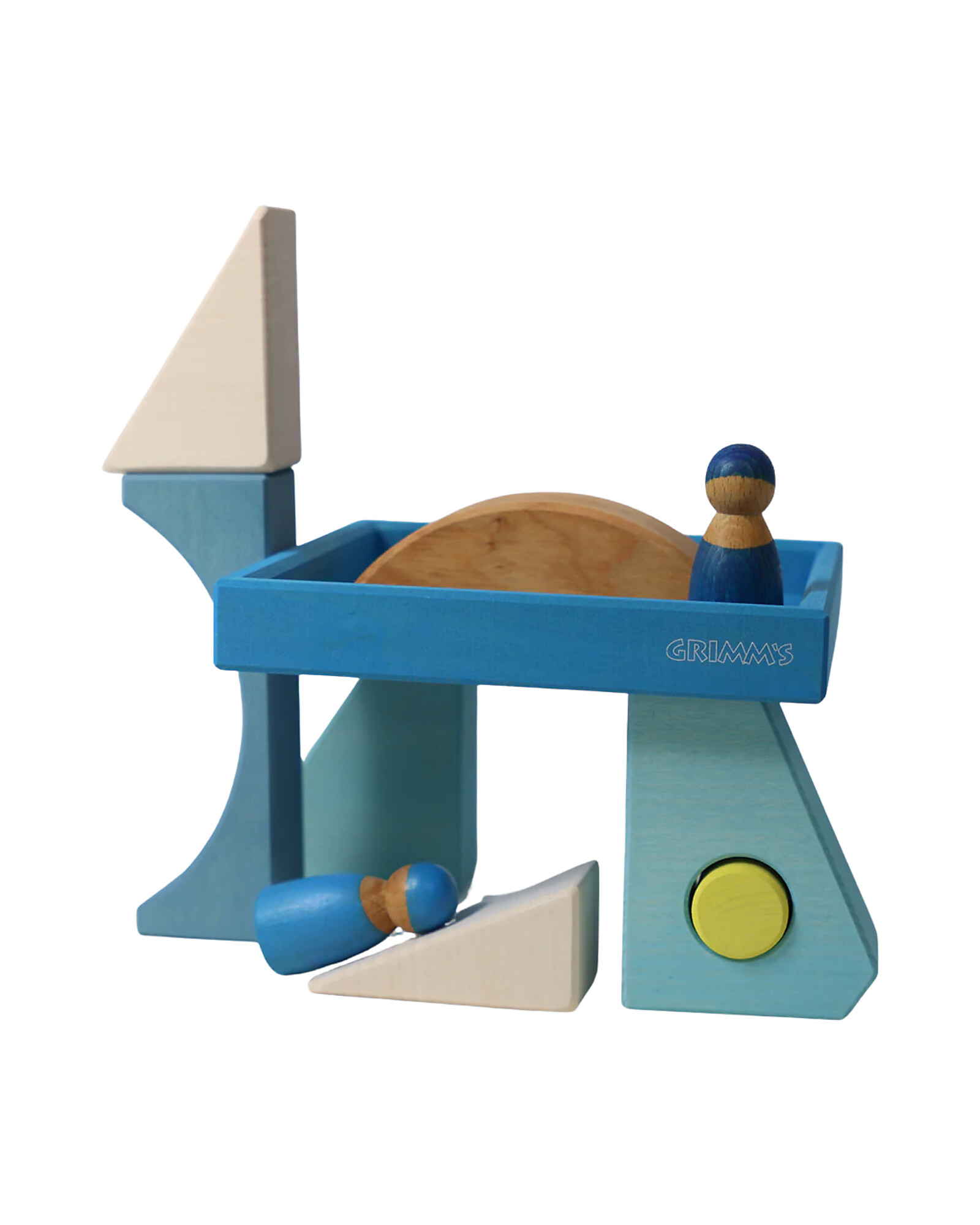 Welcome to Grimm's, a world where fantasy and sustainability live happily together. Founded in 1978, Grimm's Spiel und Holz Design is a family-owned company based in Hochdorf, Germany, producing lovely wooden toys and fabric dolls with an old-fashioned charm that appeal to kids of all ages: beautiful rattles and grasping toys, building blocks, creative puzzles, play dolls and pegs, skillful games and many others, all characterized by simple design, cheerful colouring, and inviting surface feel. Most of them are sanded by hand, which gives them a complete different look and touch from machined products! Design work, surface finish and treatment, assembly, quality control, packing and shipping are made in Germany while woodworking is outsourced to a few independent shops in Europe. The larger one was opened by a former Grimm's employee who went back to is native country. Grimm's love kids and nature: the wood used for Grimm's toys comes from sustainably managed forests in Europe and all fabrics used are Oeko-Tex certified, a guarantee that they're free from harmful chemical substances. Safe, eco-friendly and beautiful, Grimm's toys are unique products that are played with over and over again, enhancing your child's creativity and motor skills.