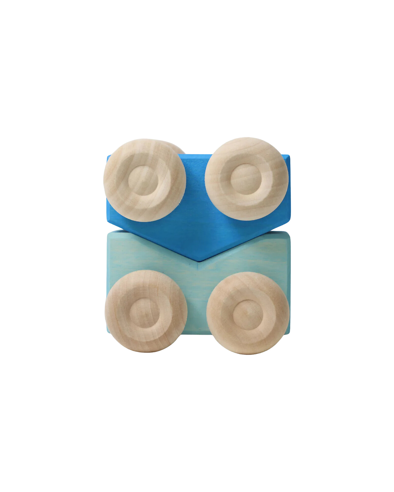 Our Stacking Cars are much more than simple toys: they are an invitation to experience adventure with imagination. Each car can stack with the others, creating spectacular moving towers, or speed along on any surface thanks to its smooth wheels. Children can also build on top, turning them into unique, personalized vehicles. The vivid colors and varied shapes naturally teach color harmony and the concept of matching shapes. Made of color-glazed lime wood with maple-wood wheels, they offer a warm, authentic feel to the touch. A simple toy, yet full of magic and creative potential.