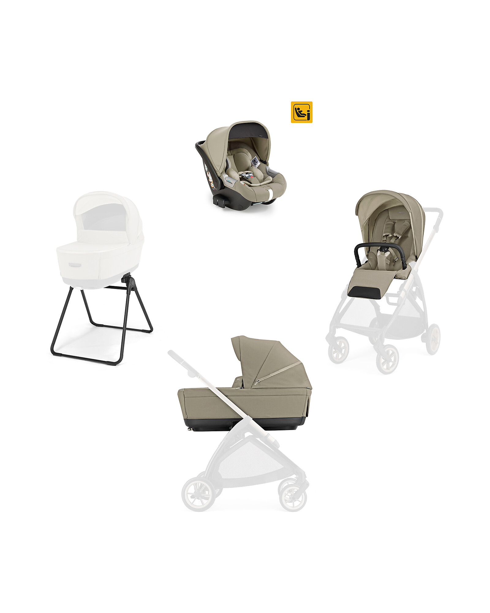 Electa System Quattro - Hangar Beige - All Season Seat + Open Up Cot + Standup + Darwin Car Seat