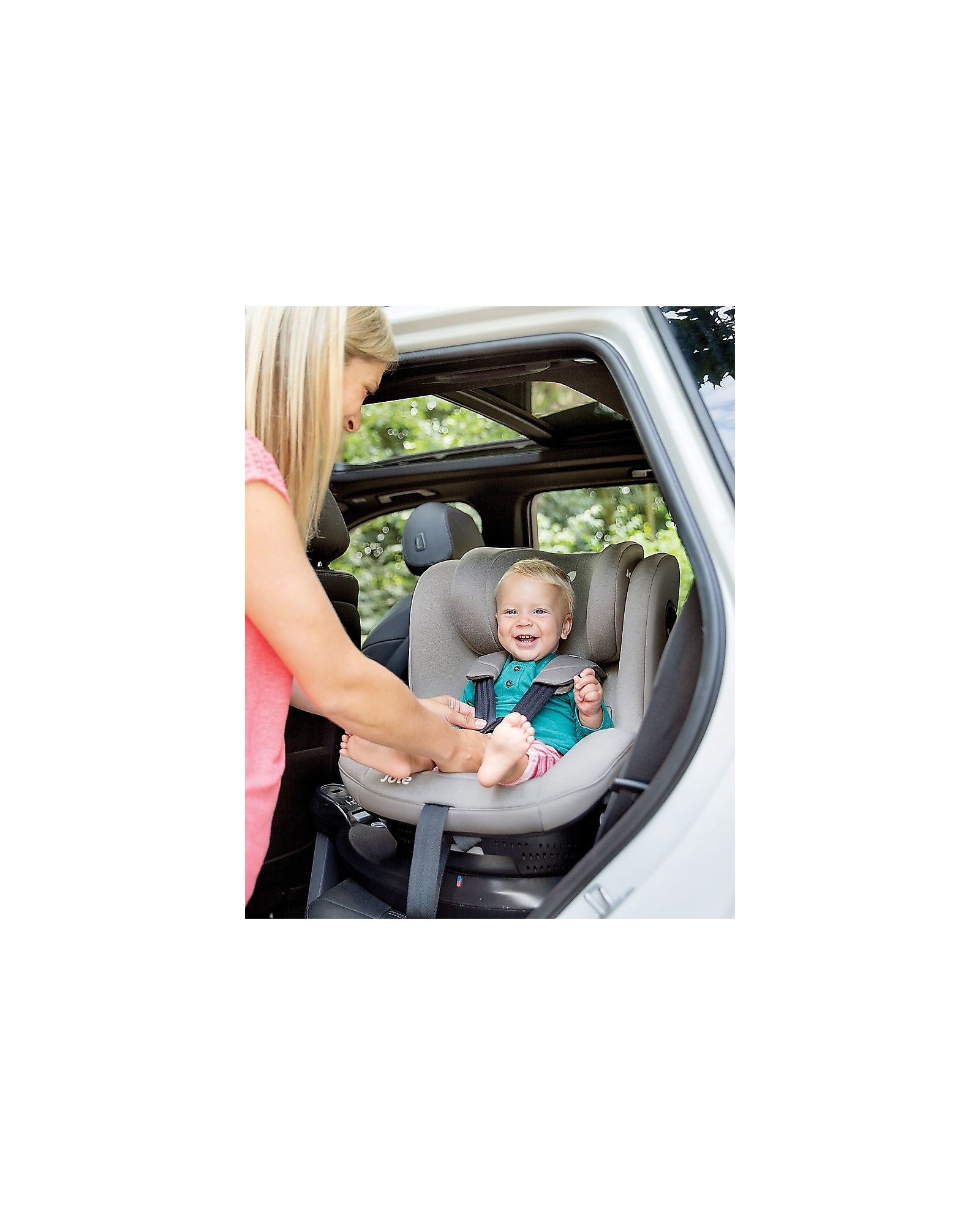 Suitable from birth to 4 years (105 cm), thanks to the Grow-with-me insert, this car seat is a real innovation. It features a Simple Swivel one hand turning activator, positioned right where you naturally reach, that allows your car seat to rotate rearward, forward and everywhere in between for an easy in and out. And the Smart Ride lockoff will offer smarter security to help keep baby rearward until it's time to transition forward.