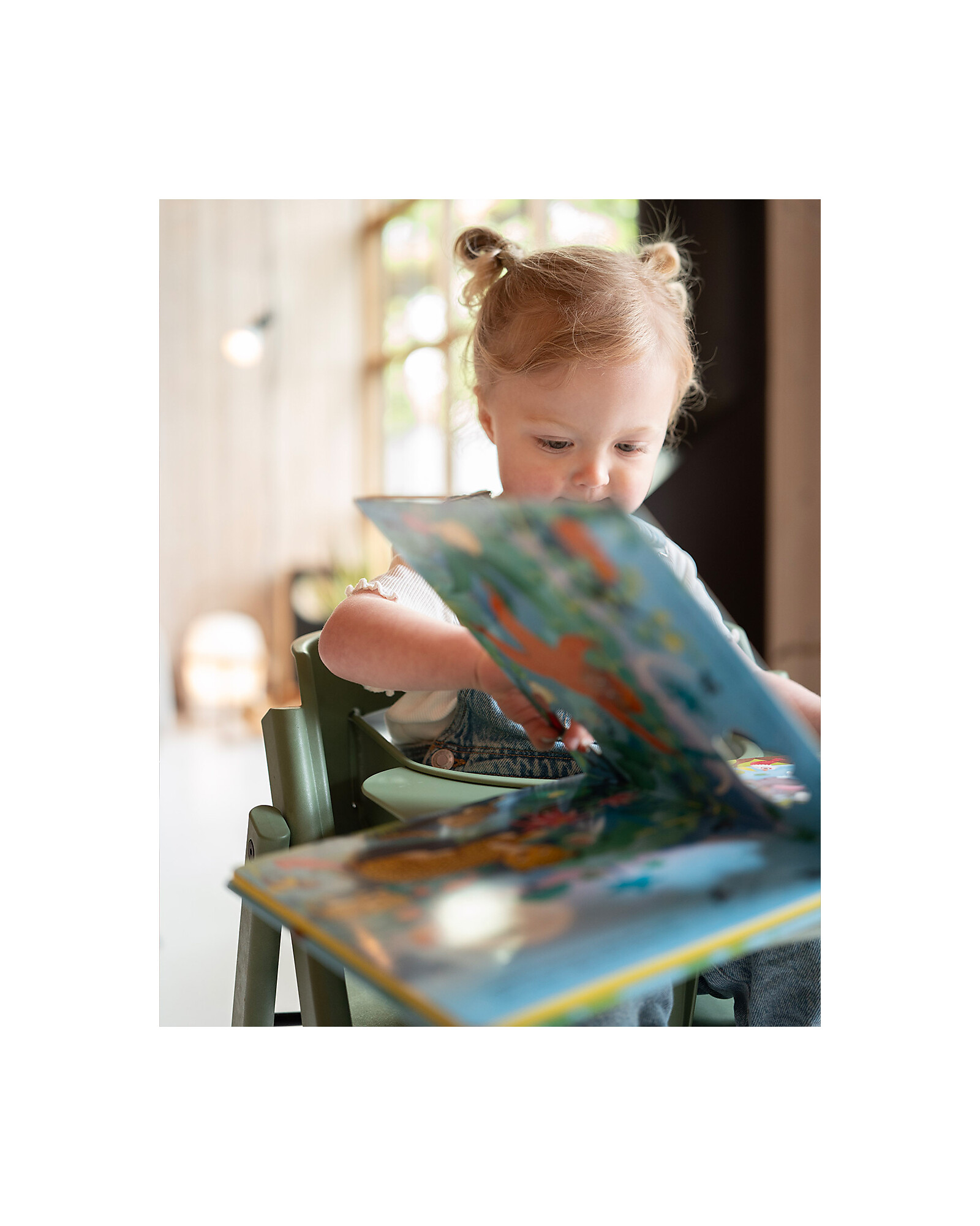 The large and practical tray provides all the space needed for plates, cups, snacks, and small toys, helping the child focus on their food and encouraging them to develop independence during mealtime. It clicks onto the safety rail in an instant and stays firmly in place thanks to smart design and durable materials.