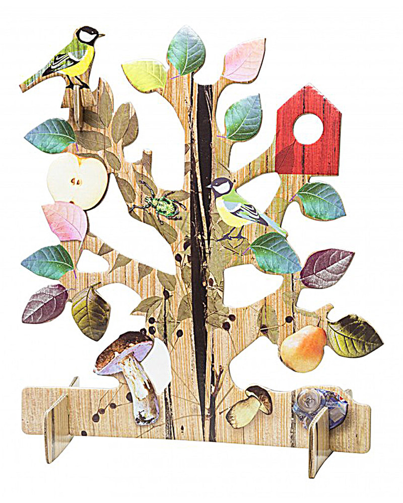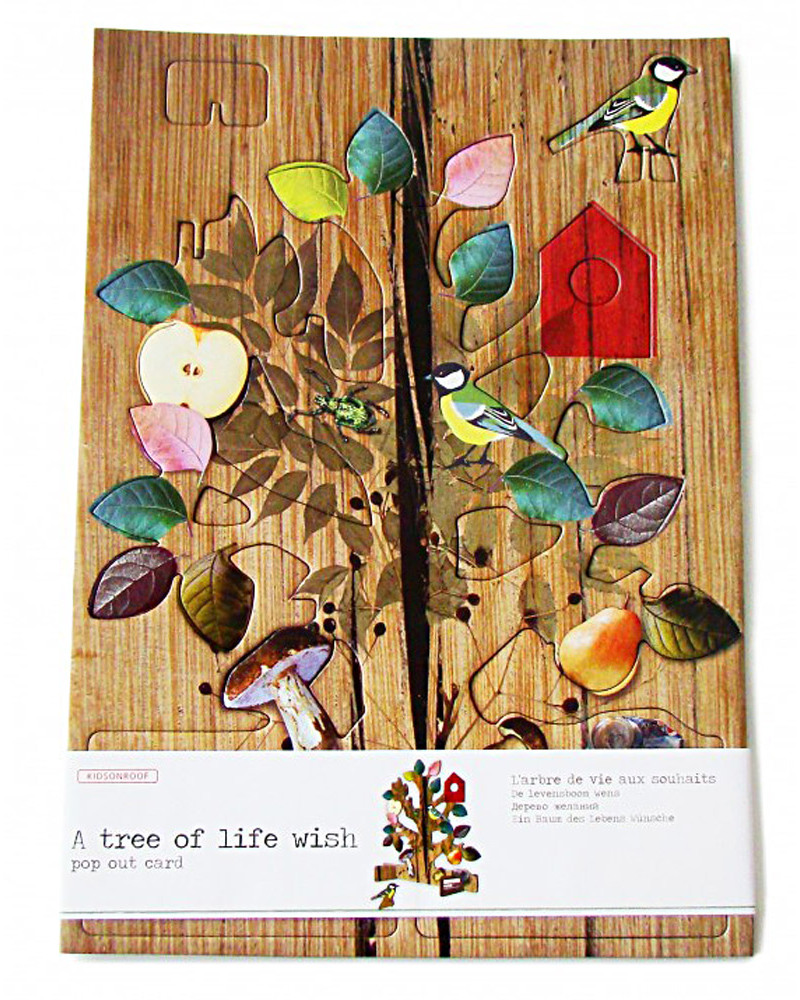A very special way to send your greetings at Christmas, or at any other time, with a card that is so much more than a greetings card – the Tree of Life is a beautifully designed decorative tree that also makes awell received gift. It is large size: same as an A4 paper (30 x 21 cm) and easy to remove from the pre-cut cardboard and assemble, it has an entirely original look, inspired by Nature, with delicate, natural, earthy colours and birds perching happily on the branches! Your message will go on being treasured, as this pop-out card will look lovely sitting on a table or bookcase. Supplied with note card and specially-designed envelope to make sending it easy. Another innovative idea from Kidsonroof of Holland, with the features they are known for – good design, excellent quality and respect for sustainability.