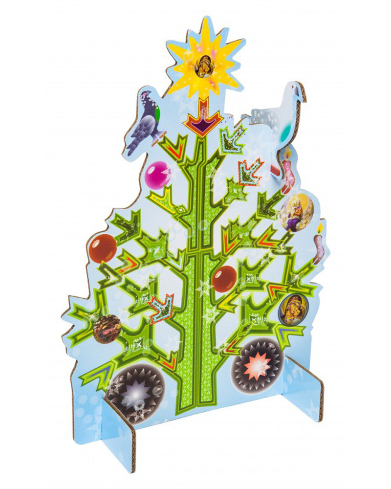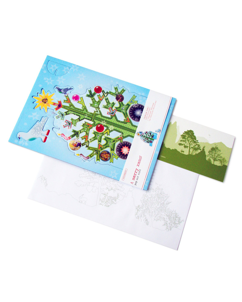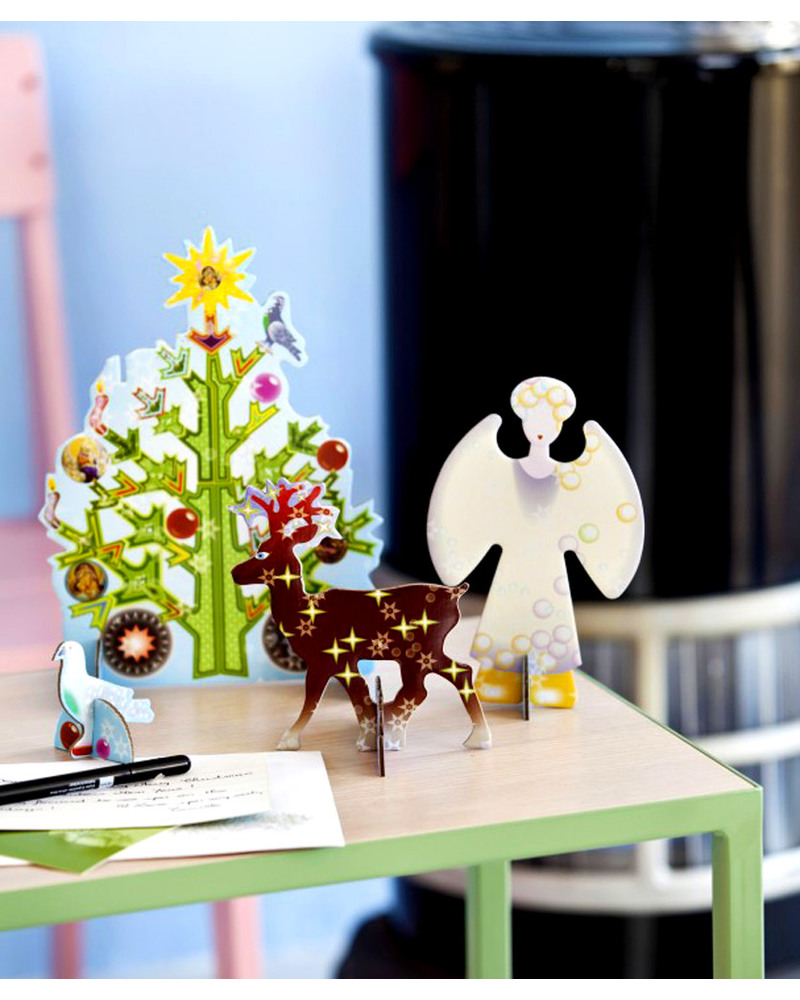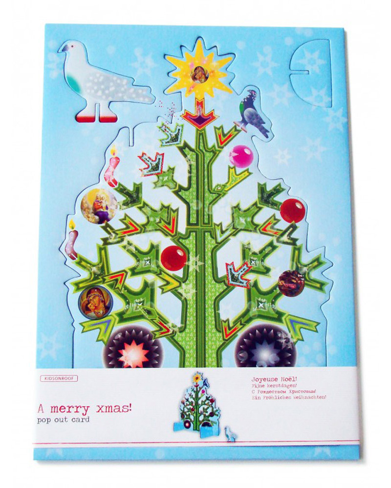 Here is a very special and original way to say “Merry Christmas”! The Pop Out Christmas Tree is so much more than just a Christmas card – it is a substantial size (30 x 21 cm, as big as an A4 paper) and stands on its own as a very pretty decoration, and one that will keep your “Christmas Greetings” message alive. When detached and placed on its stand, it will sit sturdily on a table or shelf right through the Festive Season, a colourful, beautifully drawn, modern version of the traditional tree, complete with an angel at the top! Another innovative idea from the Dutch Kidsonroof company, with their characteristic creativity, attention to detail and environmental awareness. Includes a little note card and a beautifully printed envelope to make your gift complete.