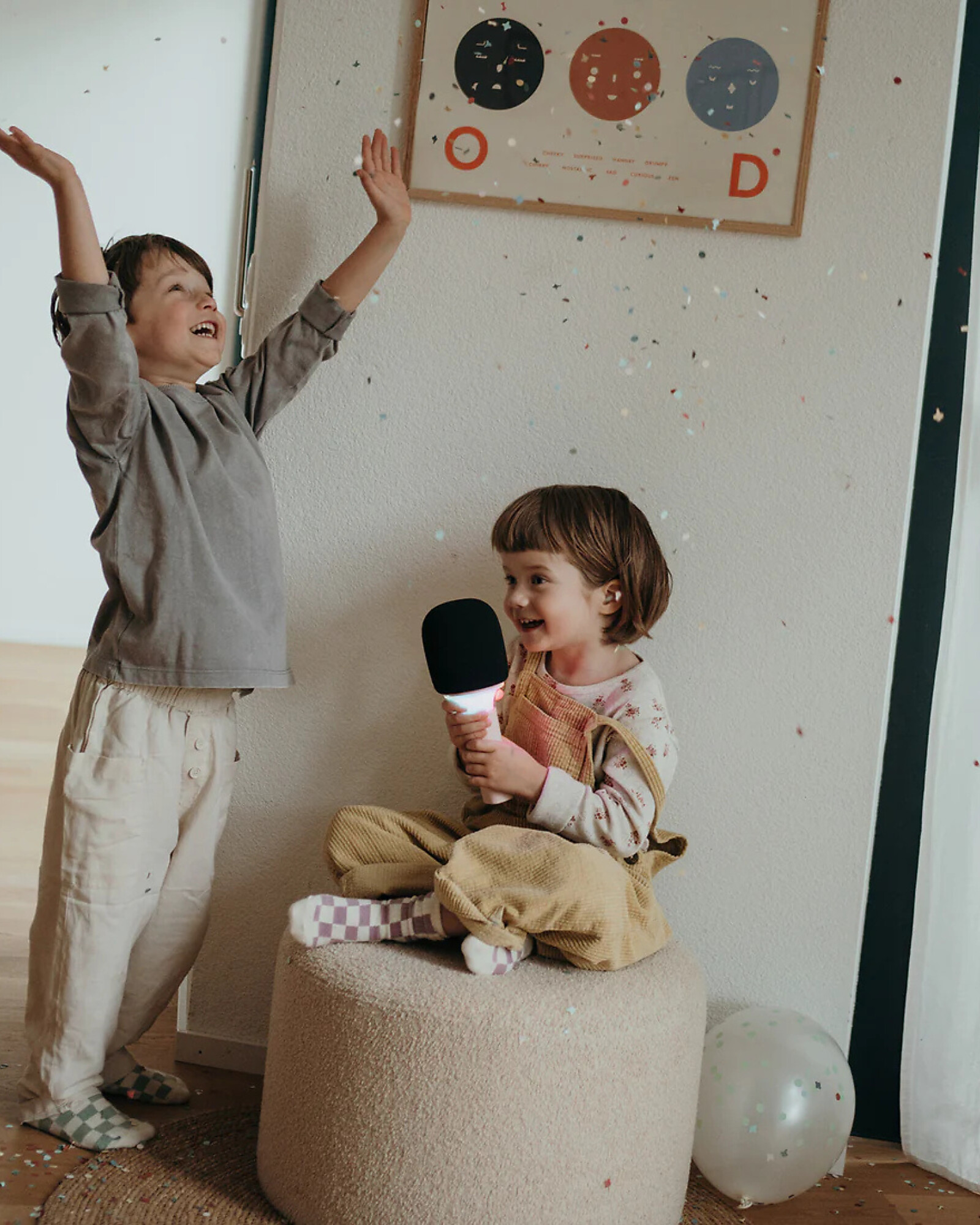 The all-in-one microphone turns every moment into a party full of music and laughter. With voice changing, fun sound effects, and smartphone connectivity, enjoying karaoke becomes easy and engaging. The colorful LED lights create the perfect atmosphere, while the interactive features invite you to sing, play with your voice, and share emotions. Ideal for friends and family, this karaoke microphone stimulates creativity, encourages self-expression, and makes every evening unique. Just connect your phone, choose your favorite song, and let yourself be carried away by a dynamic musical experience designed to deliver fun, energy, and unforgettable memories. A small device that sparks big emotions and makes every gathering special.
