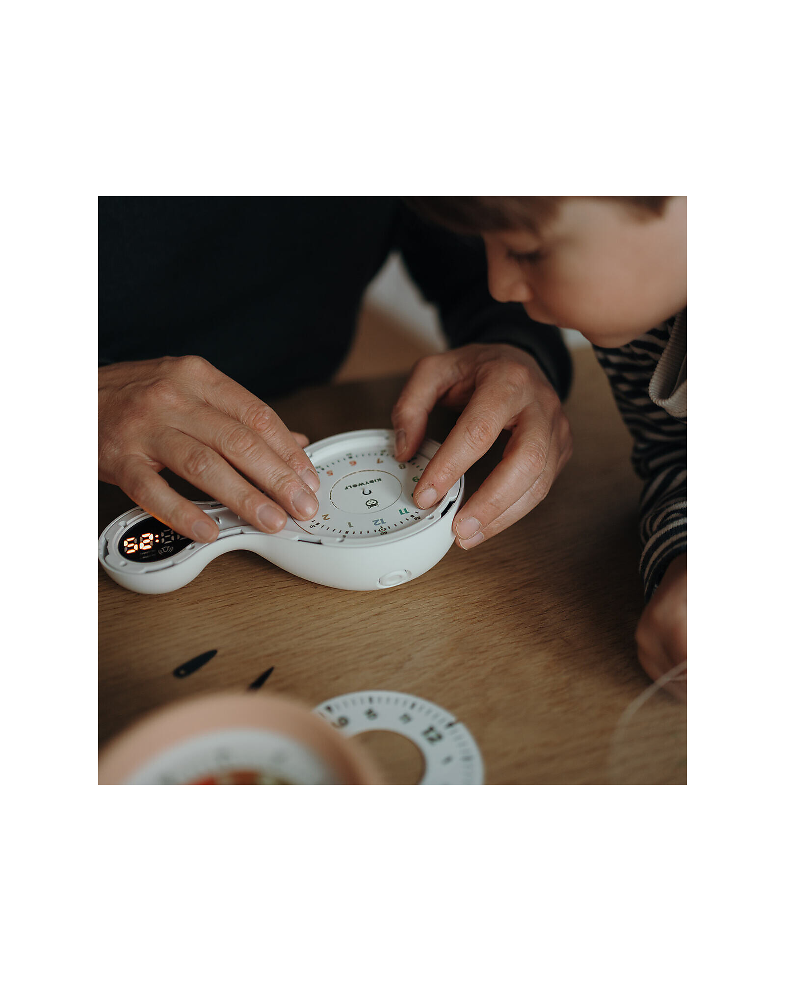 It’s not just a simple alarm clock, but a growing companion that teaches children how to read the time step by step.