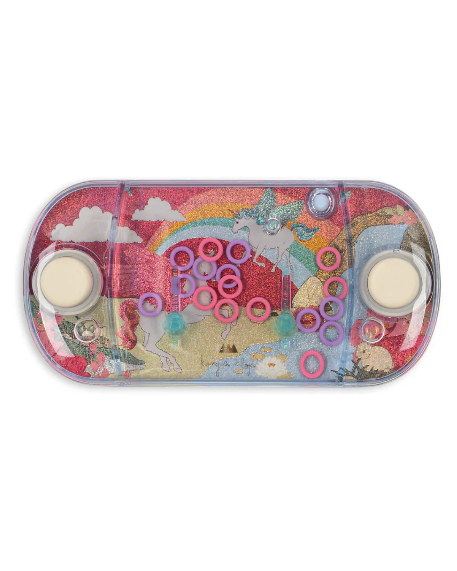 Designed with the iconic Konges Sløjd backgrounds, this water game captures attention at first glance and invites children to challenge themselves with curiosity and enthusiasm. By pressing the buttons, little hands learn to move with precision, while eyes follow the colorful rings dancing toward the floating pegs. Every attempt is a small challenge, every success a moment of satisfaction. Perfect for developing fine motor skills, enhancing concentration, and offering moments of calm and fun, at home or on the go. A safe, engaging, and timeless play companion, designed to grow together with children.