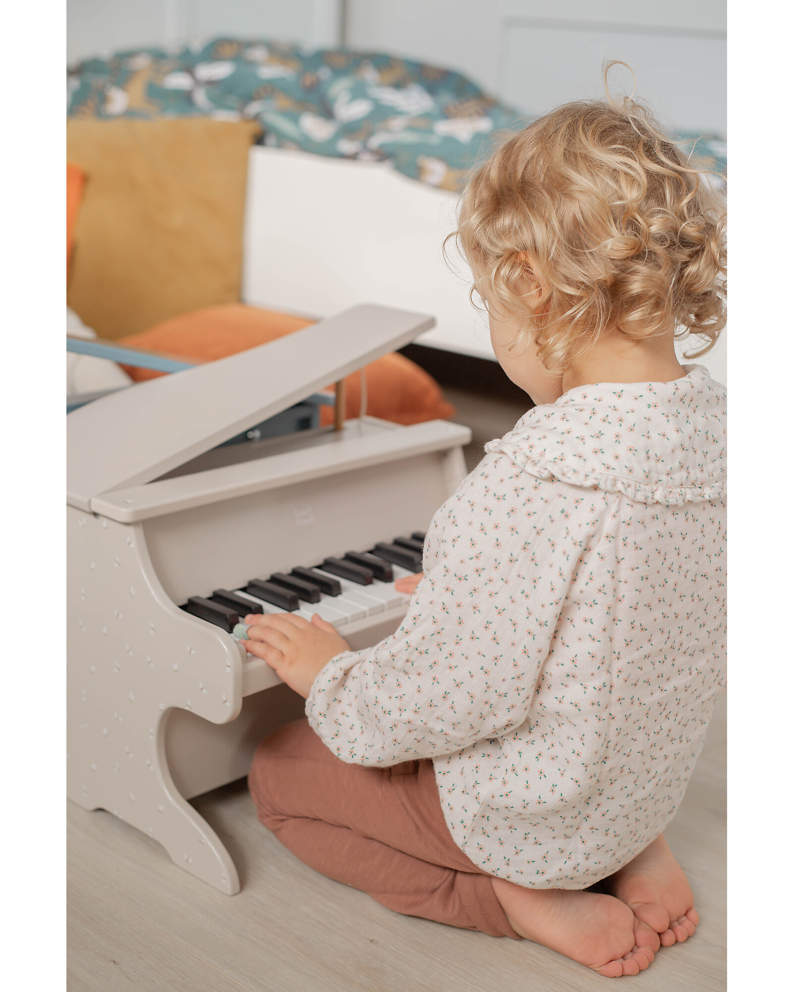 The Wooden Piano is an elegant, high-quality musical toy, perfect for little musicians from 12 months onward. Made from FSC-certified beech wood, this piano combines sustainability, safety, and durability. Painted with non-toxic, water-based paints, it is safe even if mouthed. This piano is an excellent sensory play instrument that promotes the development of hand-eye coordination, auditory perception, and musical creativity. A perfect gift to accompany the first steps into the world of music in a fun and educational way!