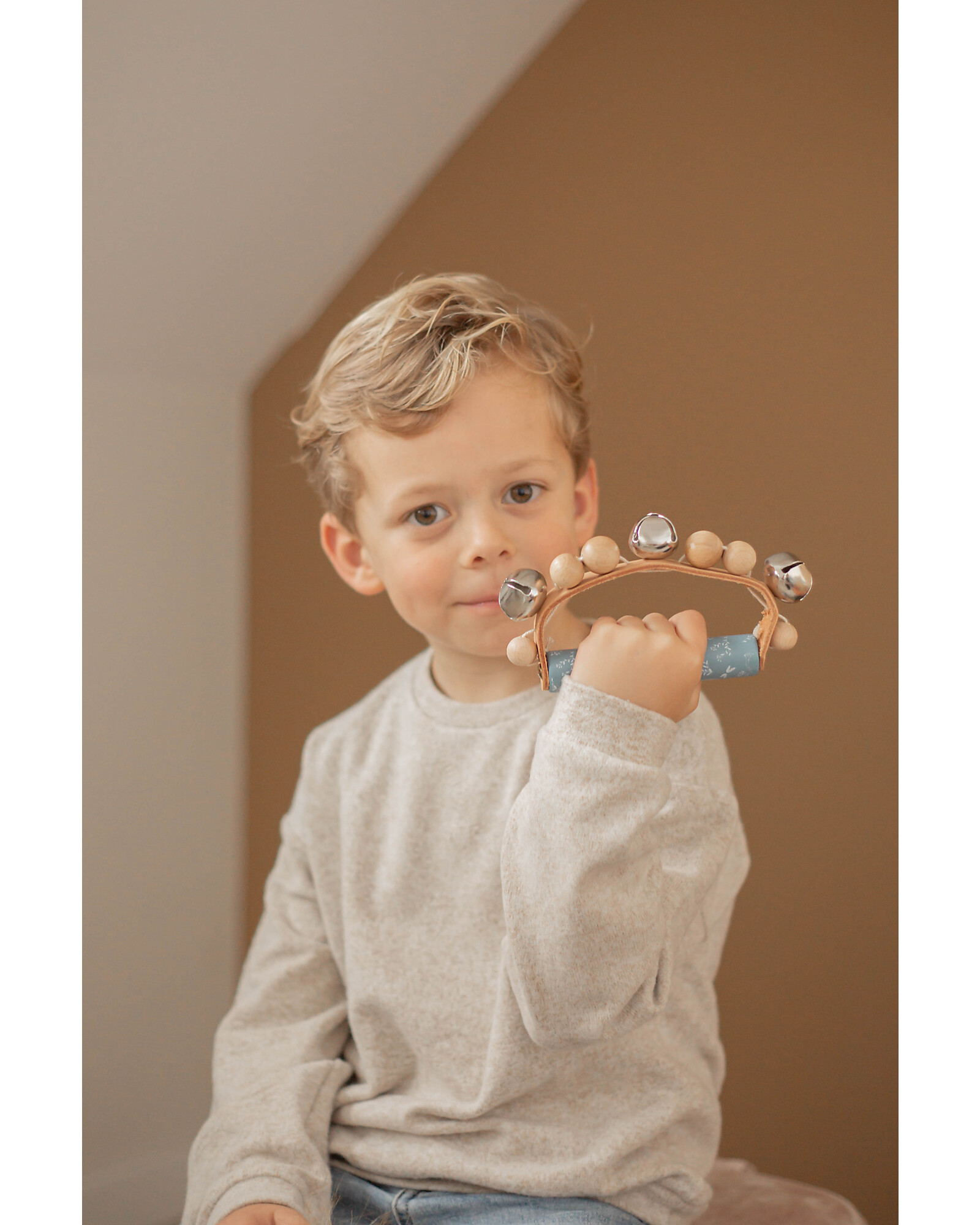A musical bell shaker that brings children the joy of spontaneous music and movement. Easy to grip, it’s perfect for encouraging coordination and auditory perception from an early age. Every shake creates a cheerful sound that fills playtime with rhythm and lightness. With its thoughtful design and natural materials, it’s safe, durable, and pleasant to the touch. A small instrument that sparks musical curiosity and offers sound-filled joy with every move.