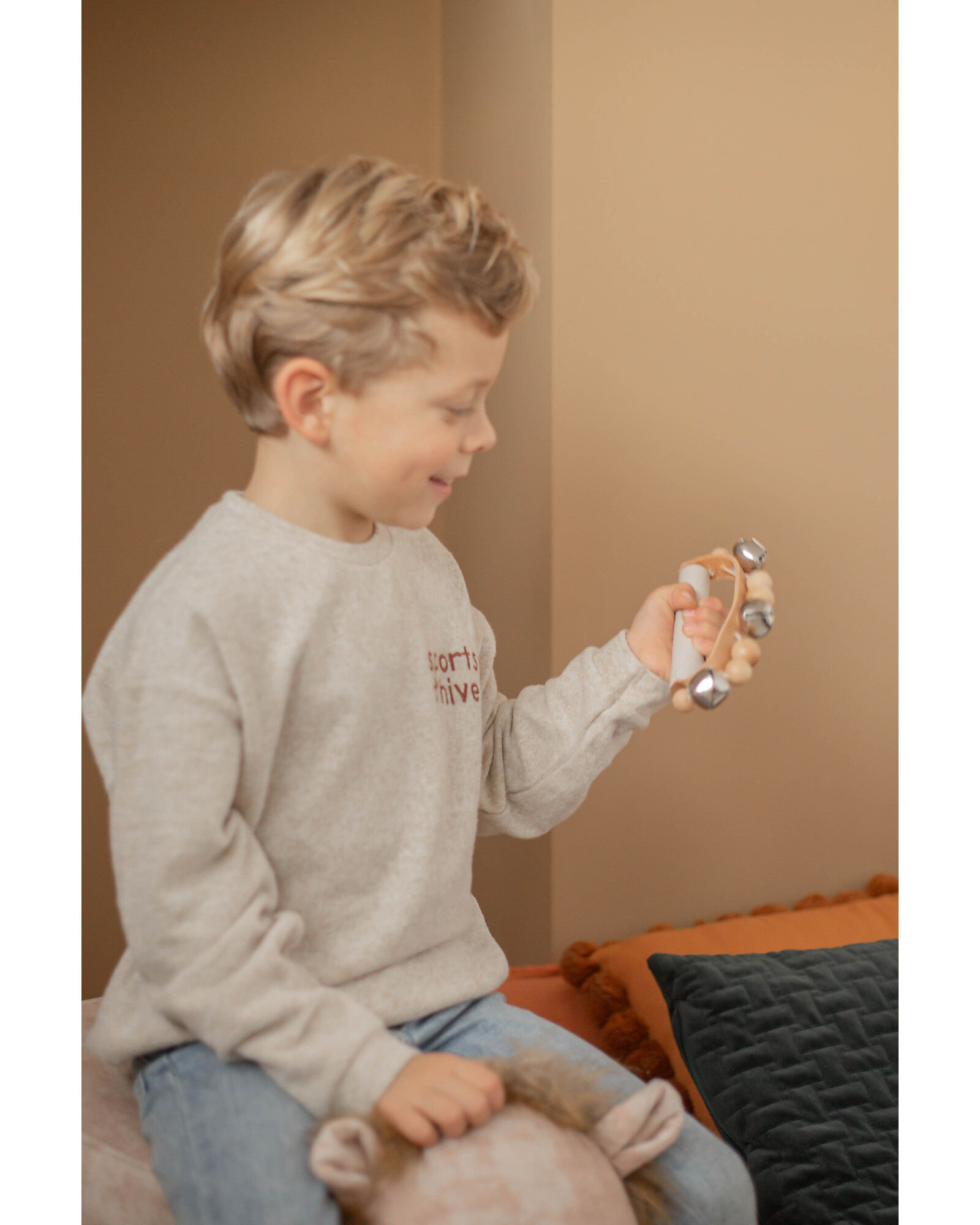 A musical bell shaker that brings children the joy of spontaneous music and movement. Easy to grip, it’s perfect for encouraging coordination and auditory perception from an early age. Every shake creates a cheerful sound that fills playtime with rhythm and lightness. With its thoughtful design and natural materials, it’s safe, durable, and pleasant to the touch. A small instrument that sparks musical curiosity and offers sound-filled joy with every move.