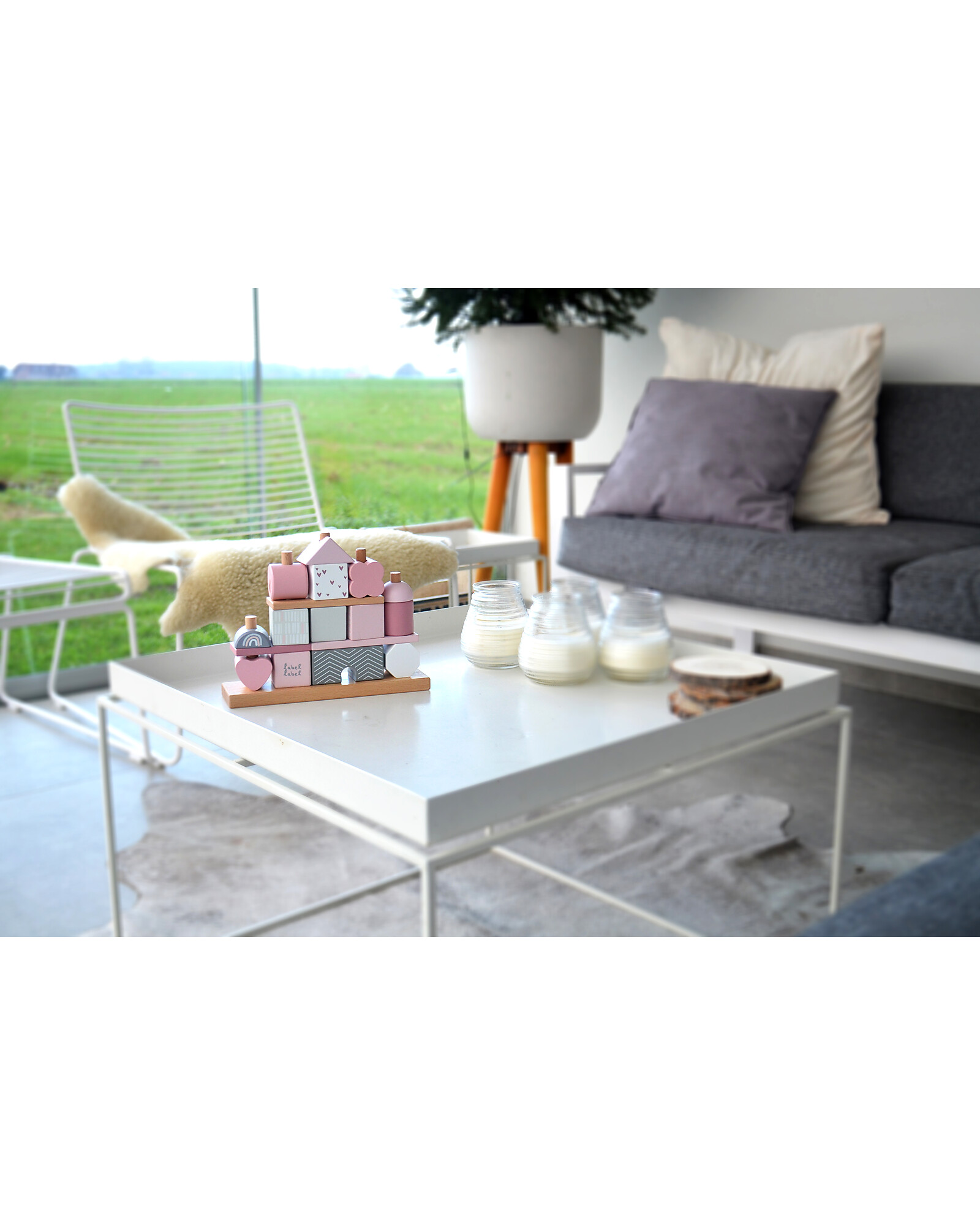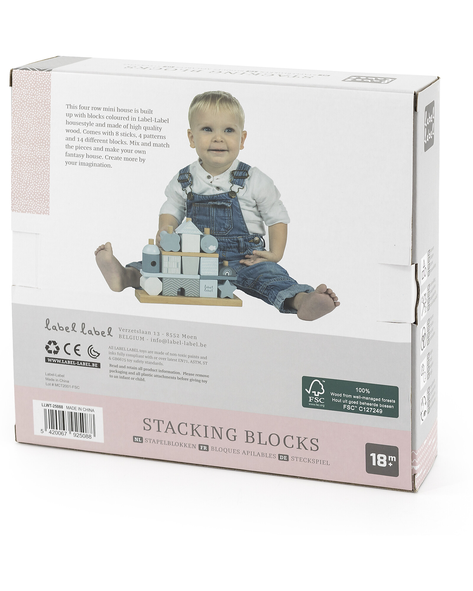 FSC Wooden Stackable Block House - Pink - 12+ m