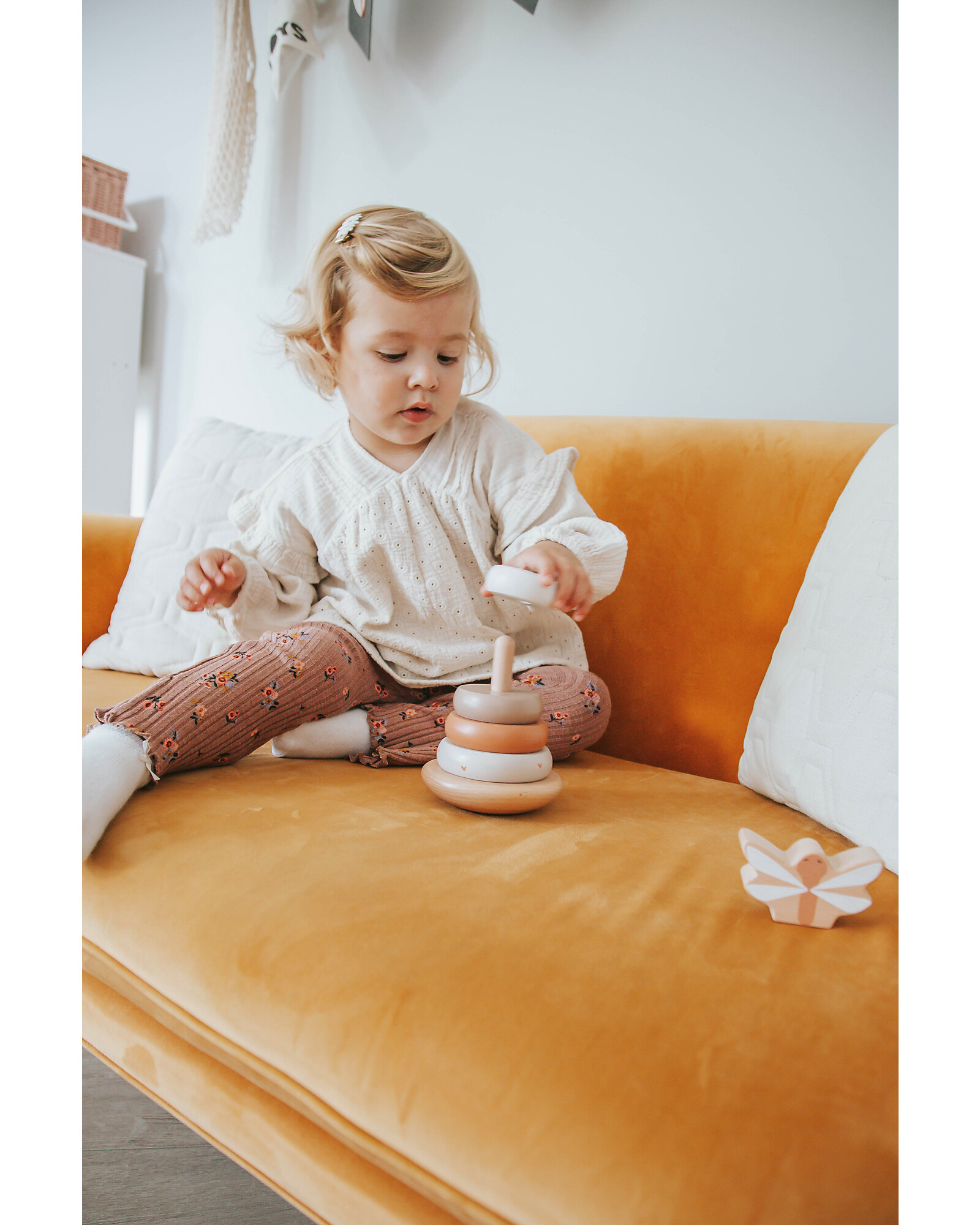 This Wooden Stacking Ring Tower by Label Label is a timeless educational toy. Made from sustainably sourced and finished with non-toxic paints, it encourages fine motor skills, hand-eye coordination, and early logical thinking. Inspired by Montessori principles, its simple yet engaging design helps little ones explore size, shape, and balance in a playful way. Compact in size, it's perfect for small hands and easy to store. This toy promotes eco-conscious play without compromising on style or quality. Ideal for both fun and learning, it supports your child’s development through hands-on discovery.