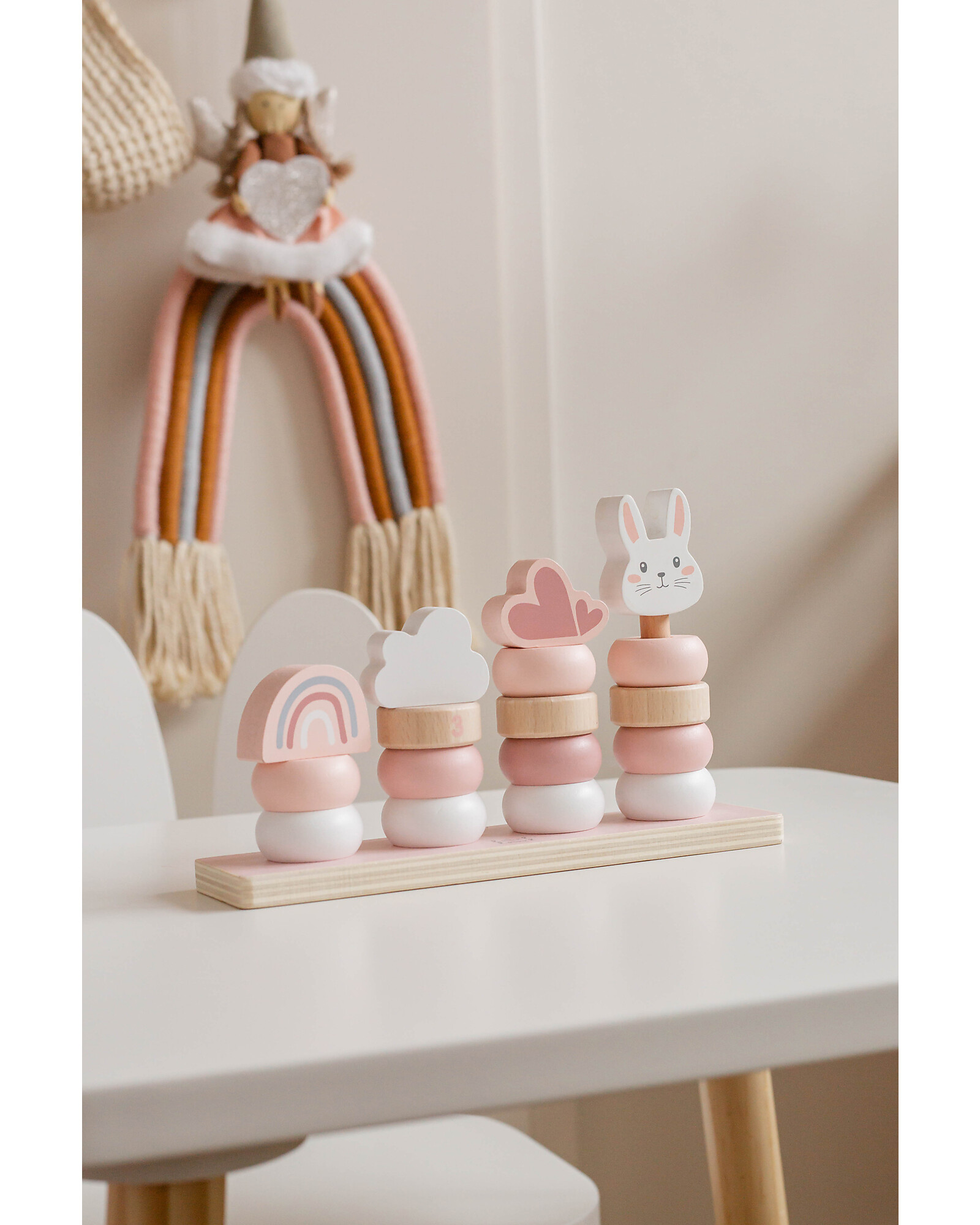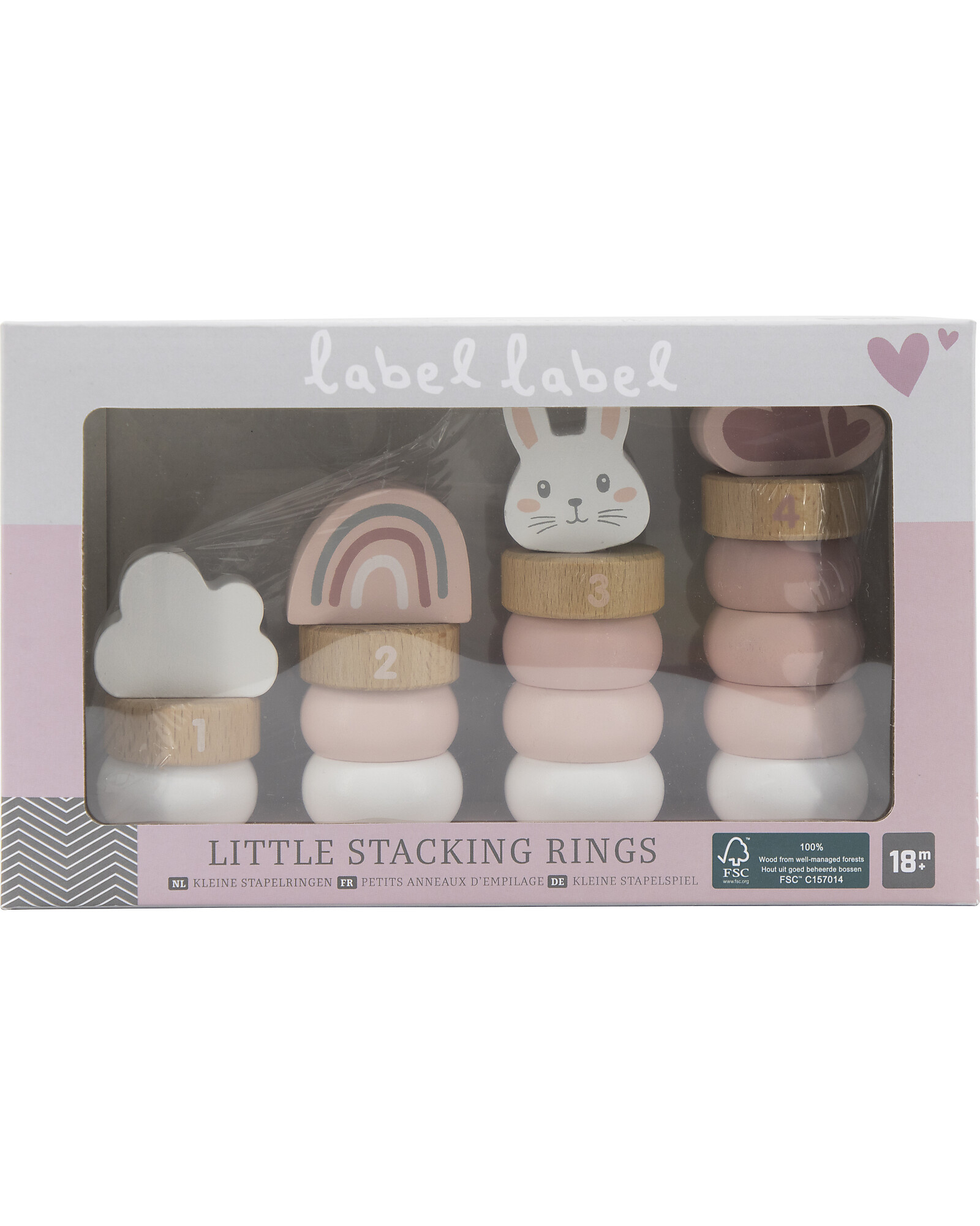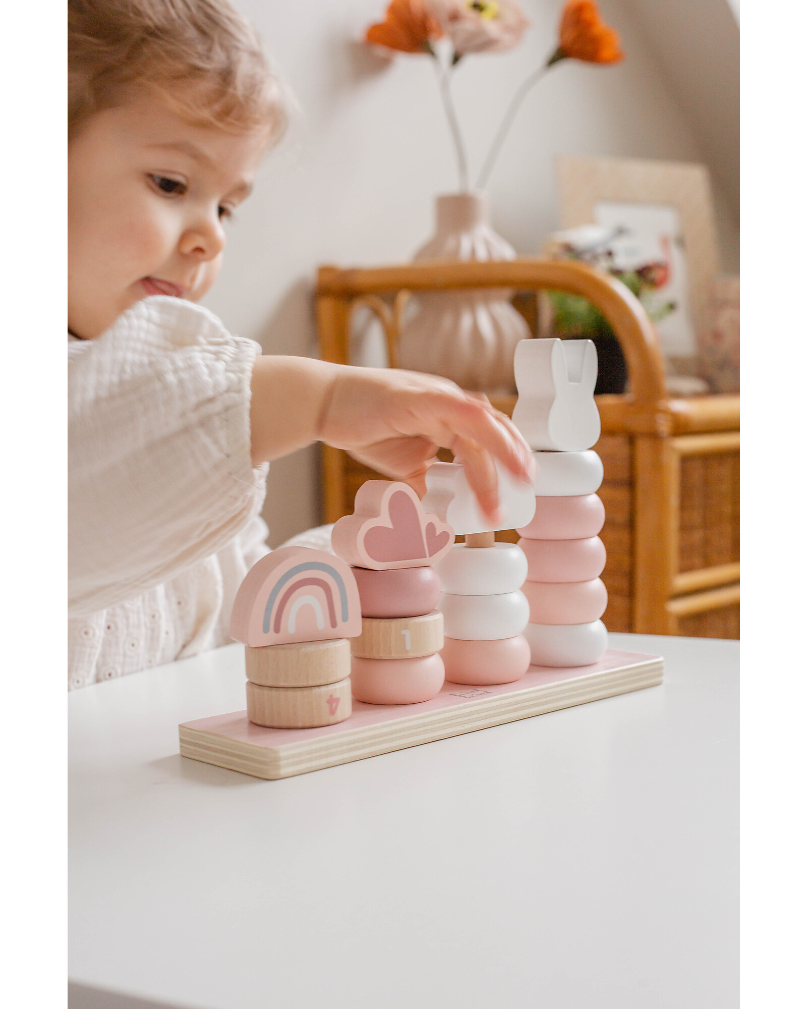 Discover the joy of educational play with the Rose Wooden Stacking Rings by Label Label — a refined and sustainable set designed to support your child's growth. Crafted from FSC-certified beech wood and painted with child-safe, water-based paints, it offers a safe and eco-friendly play experience. The four ascending towers provide a fun and engaging challenge: the set includes 10 colorful rings, 4 numbered rings, and 4 top blocks, perfect for encouraging creativity, developing motor skills, recognizing shapes, and improving hand-eye coordination.
