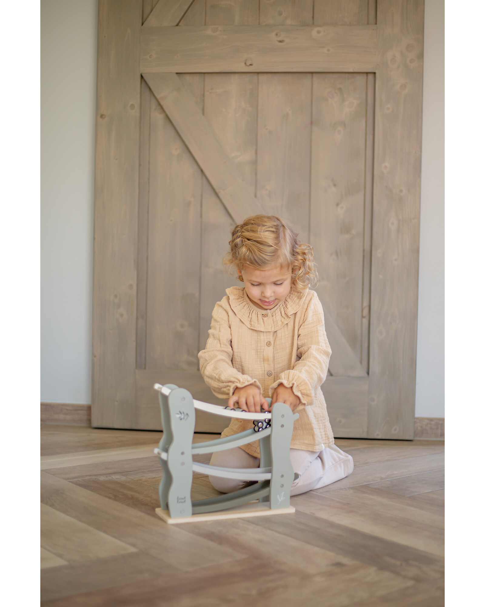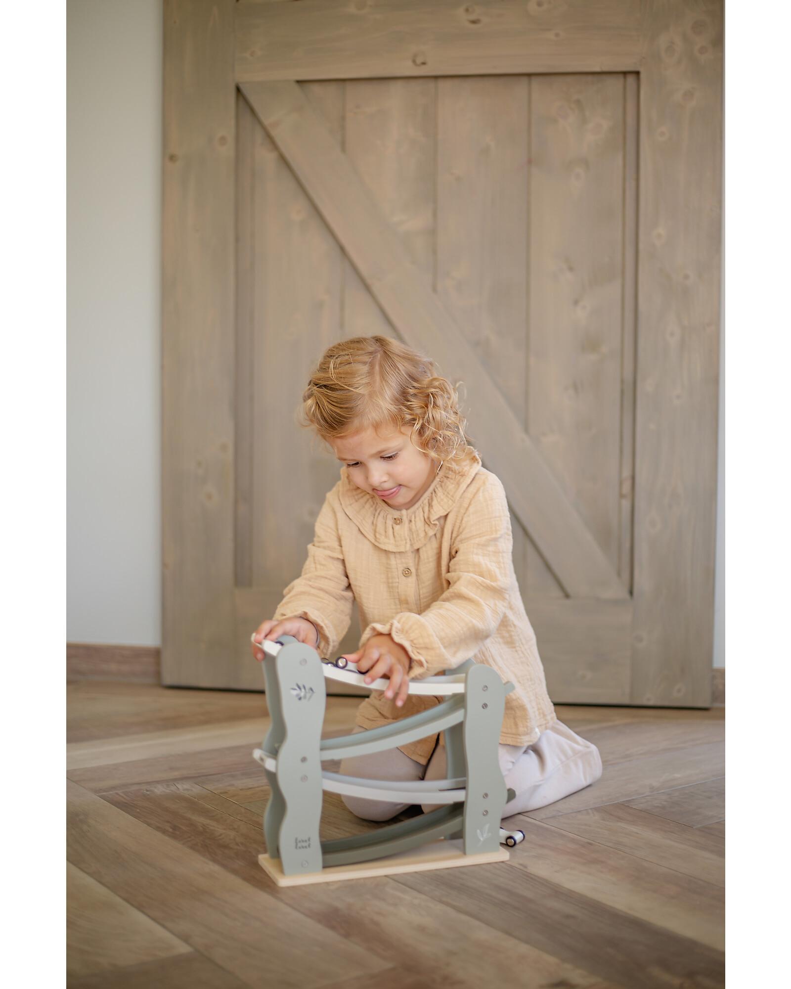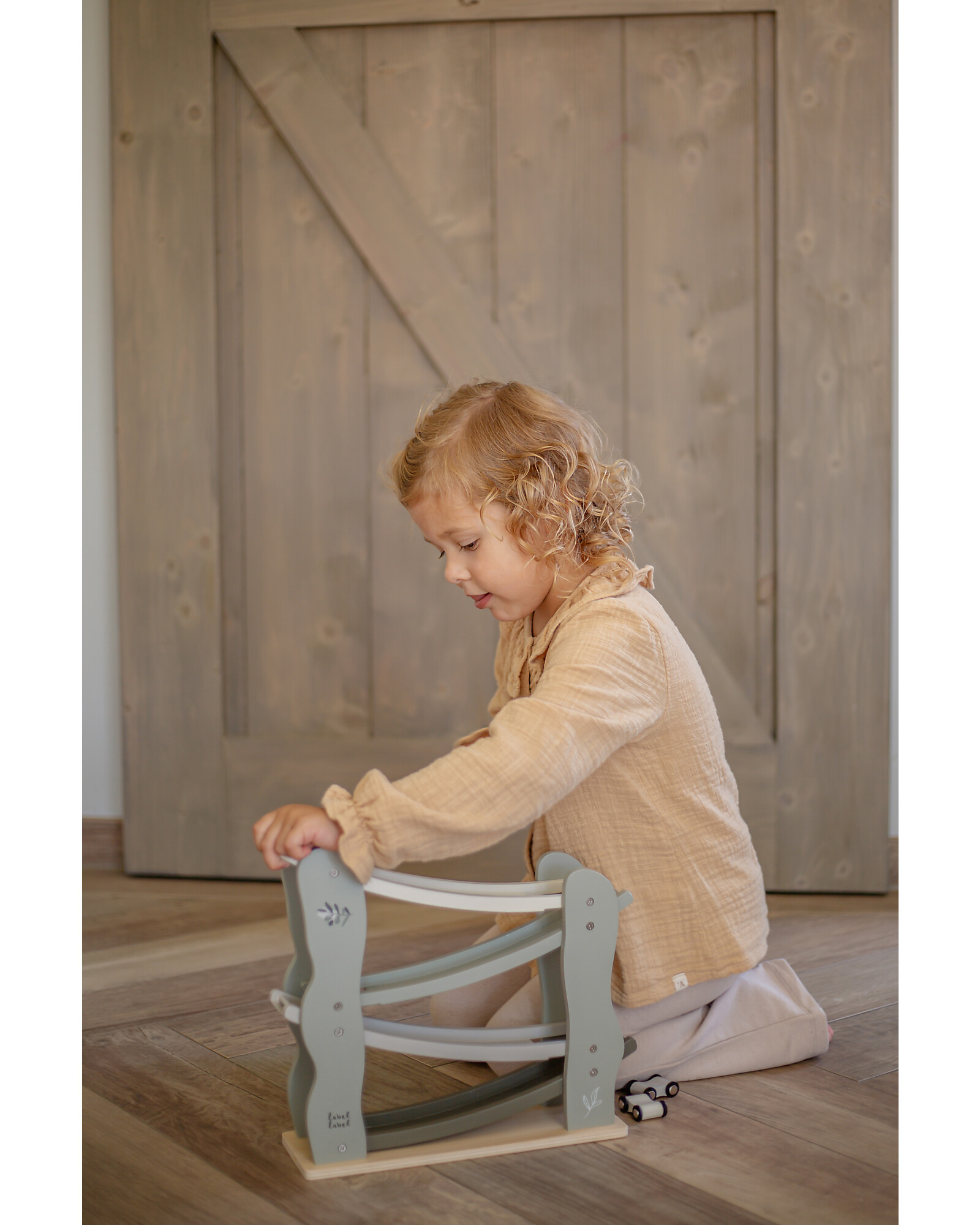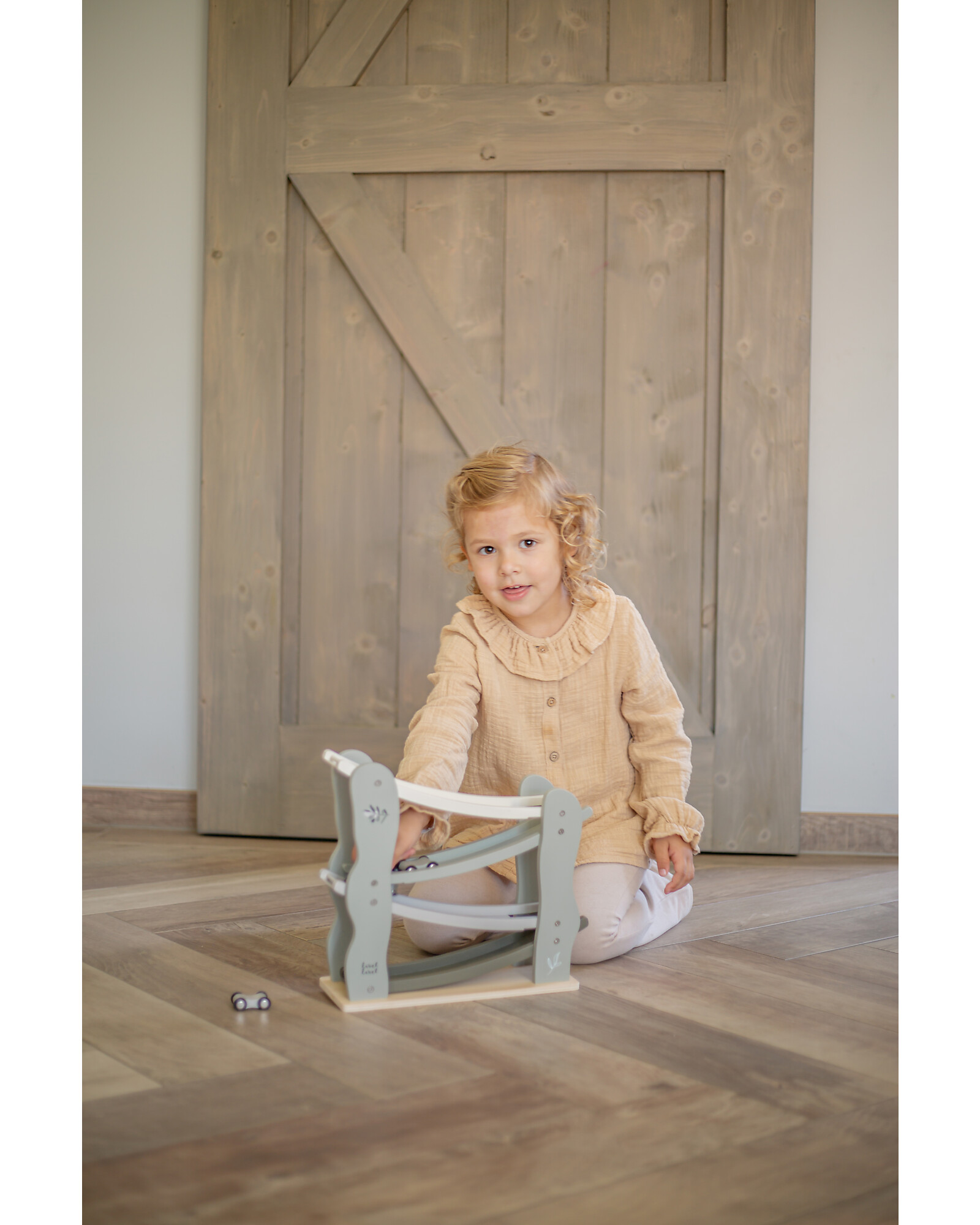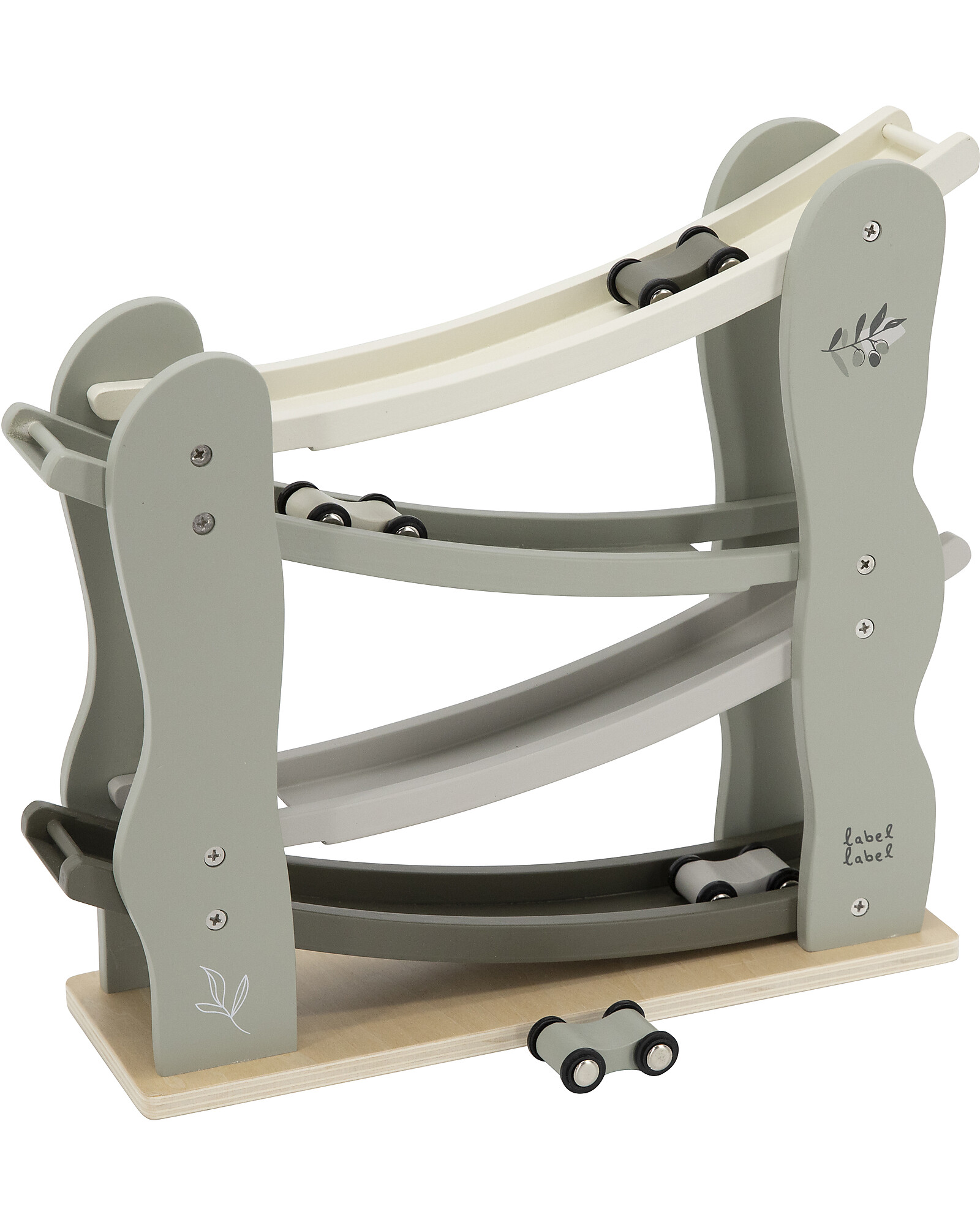 This entertaining car slide by Label Label is crafted from quality FSC-certified beechwood and painted with child-safe water-based paint. The car slide comes with 4 cars in matching colors, providing non-stop activity for your child. Place the car at the top of the slide and watch it zoom down, spinning! Or have a race among them! Fun is guaranteed while motor skills, coordination, and logical reasoning are stimulated.