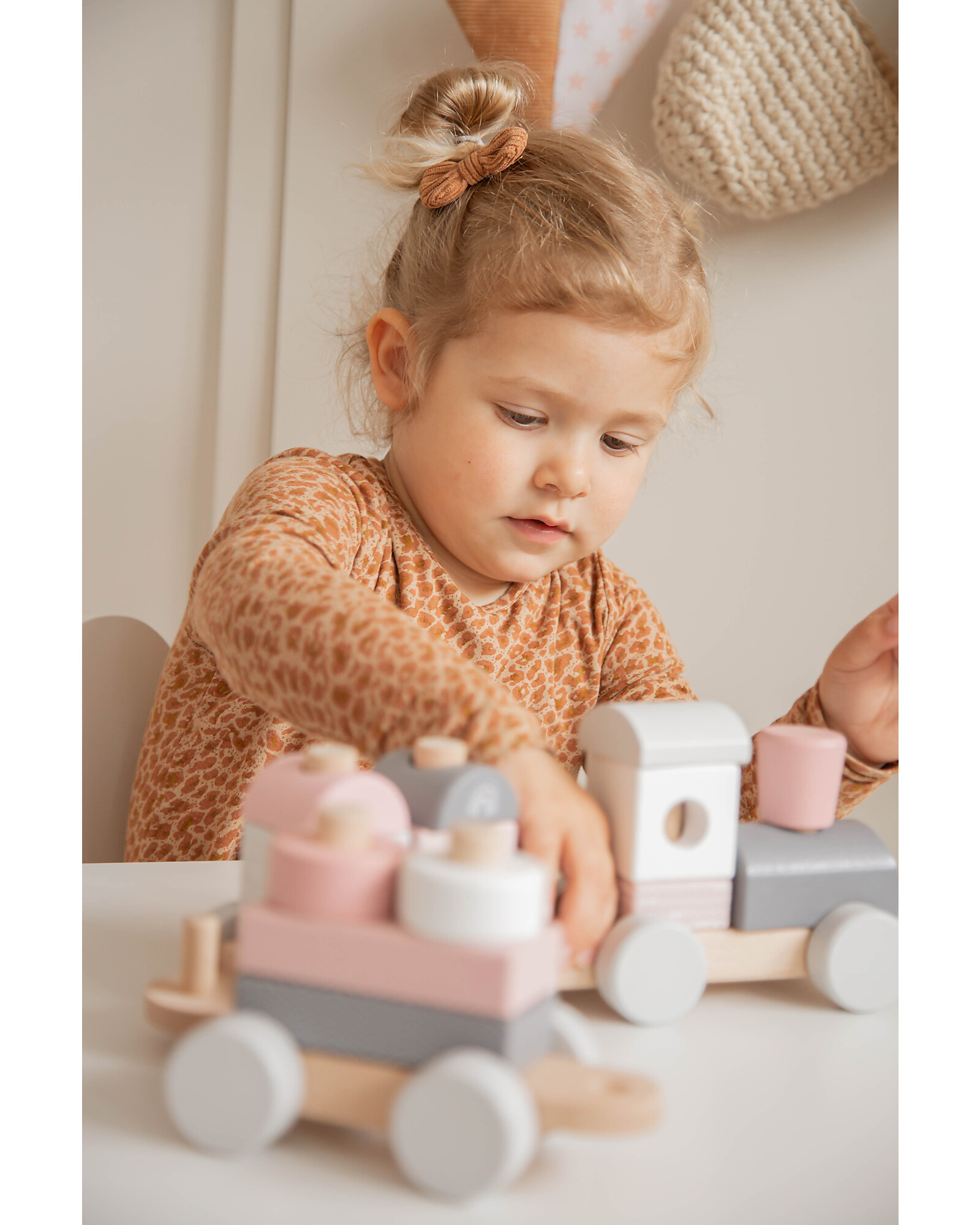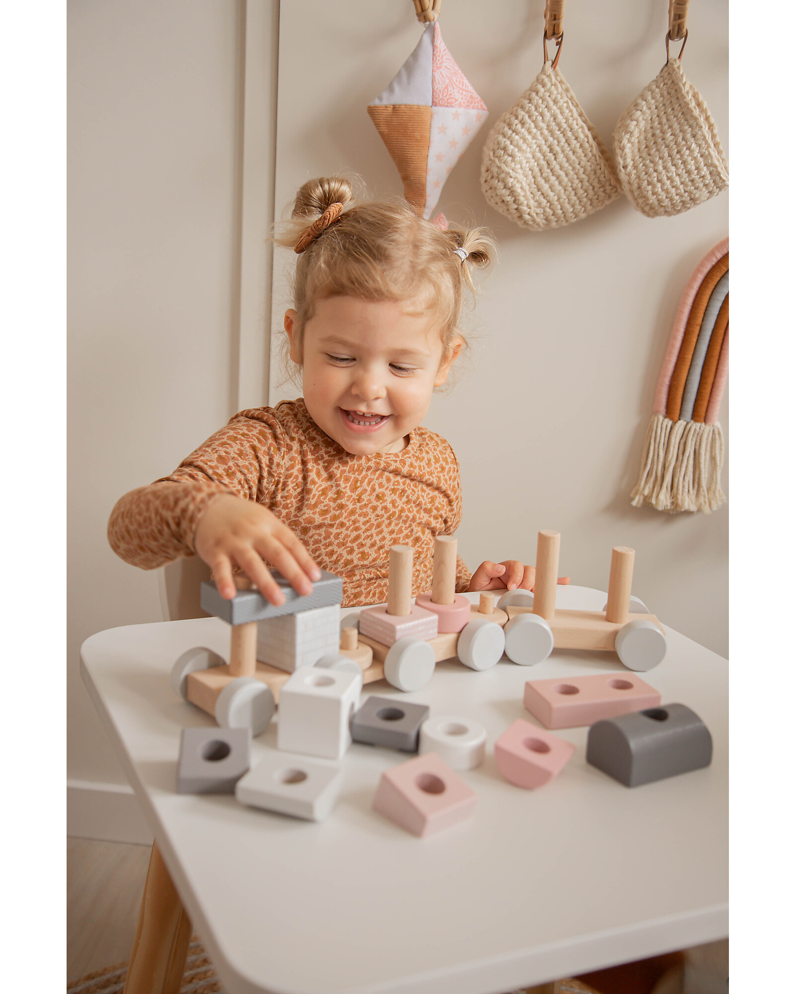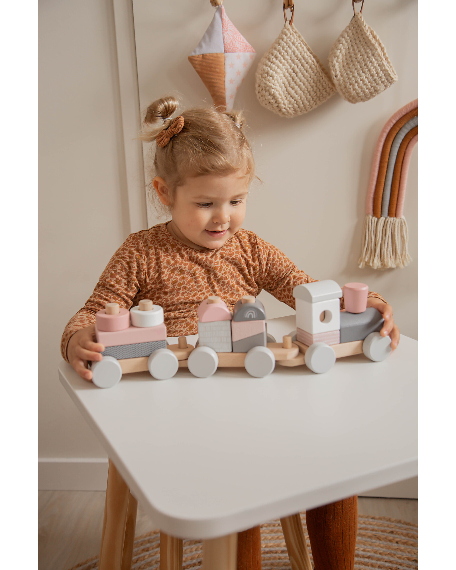 Embark on a journey of wonder with the enchanting wooden locomotive by Label Label. Crafted with love and care, each piece is a masterpiece of FSC-certified beechwood, enriched with details painted with child-safe water-based paints. This locomotive offers endless play possibilities: stack, build, and connect the wagons to create fantastical worlds. Beyond boundless fun, it stimulates creativity, spatial awareness, and motor skills. The modern and inviting design will find a home in any room. Gift your child a train of dreams, for limitless exploration.