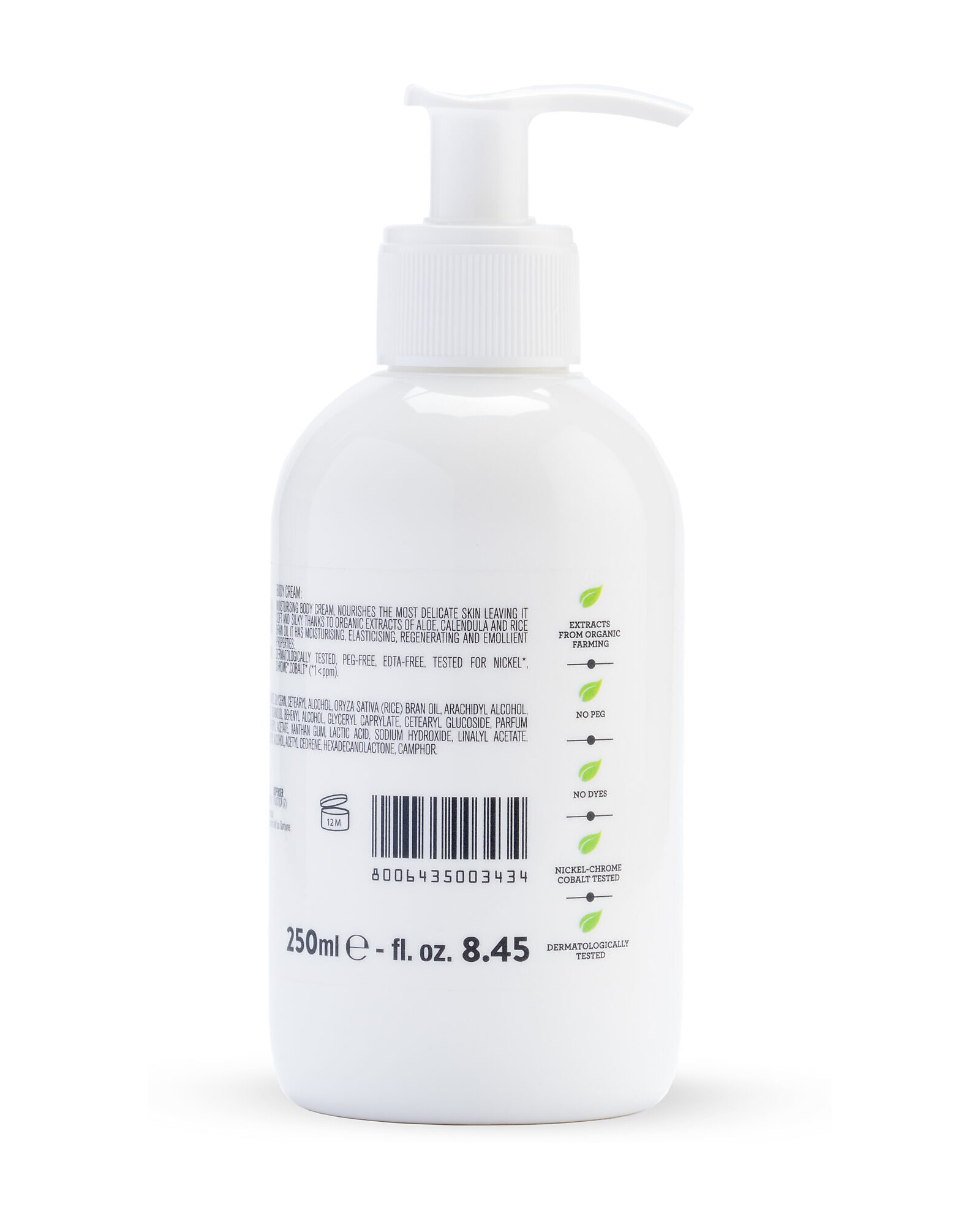 - Ingredients: Aqua (Water), Caprylic/Capric Triglyceride, Decyl Oleate, Ethylhexyl Stearate, Oryza Sativa (Rice) Bran Oil, Glycerin, Cetearyl Alcohol, Arachidyl Alcohol, Calendula Officinalis Flower Extract* , Aloe Barbadensis Leaf Extract *, Parfum (Fragrance), Behenyl Alcohol, Cetearyl Glucoside, Glyceril Caprylate, Arachidyl Glucoside, Sodium Dehydroacetate, Tocopheryl Acetate, Bisabolol, Xanthan Gum, Lactic Acid, Geraniol, Cinnamyl Alcohol, Coumarin, Anise Alcohol, Benzyl Salicylate, Linalool, Benzyl Benzoate, Citronellol, Limonene, Butylphenyl Methylpropional. *from organic farm