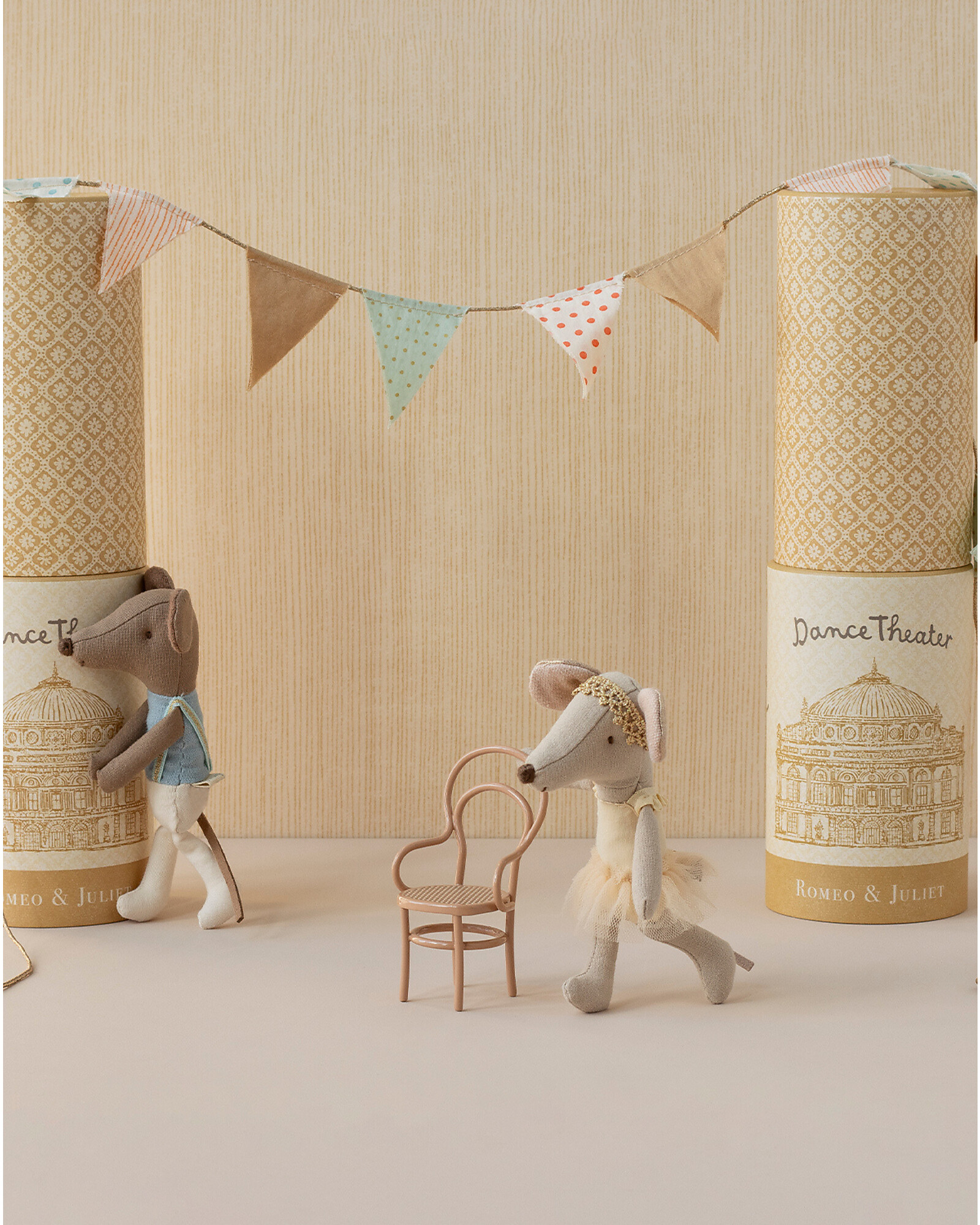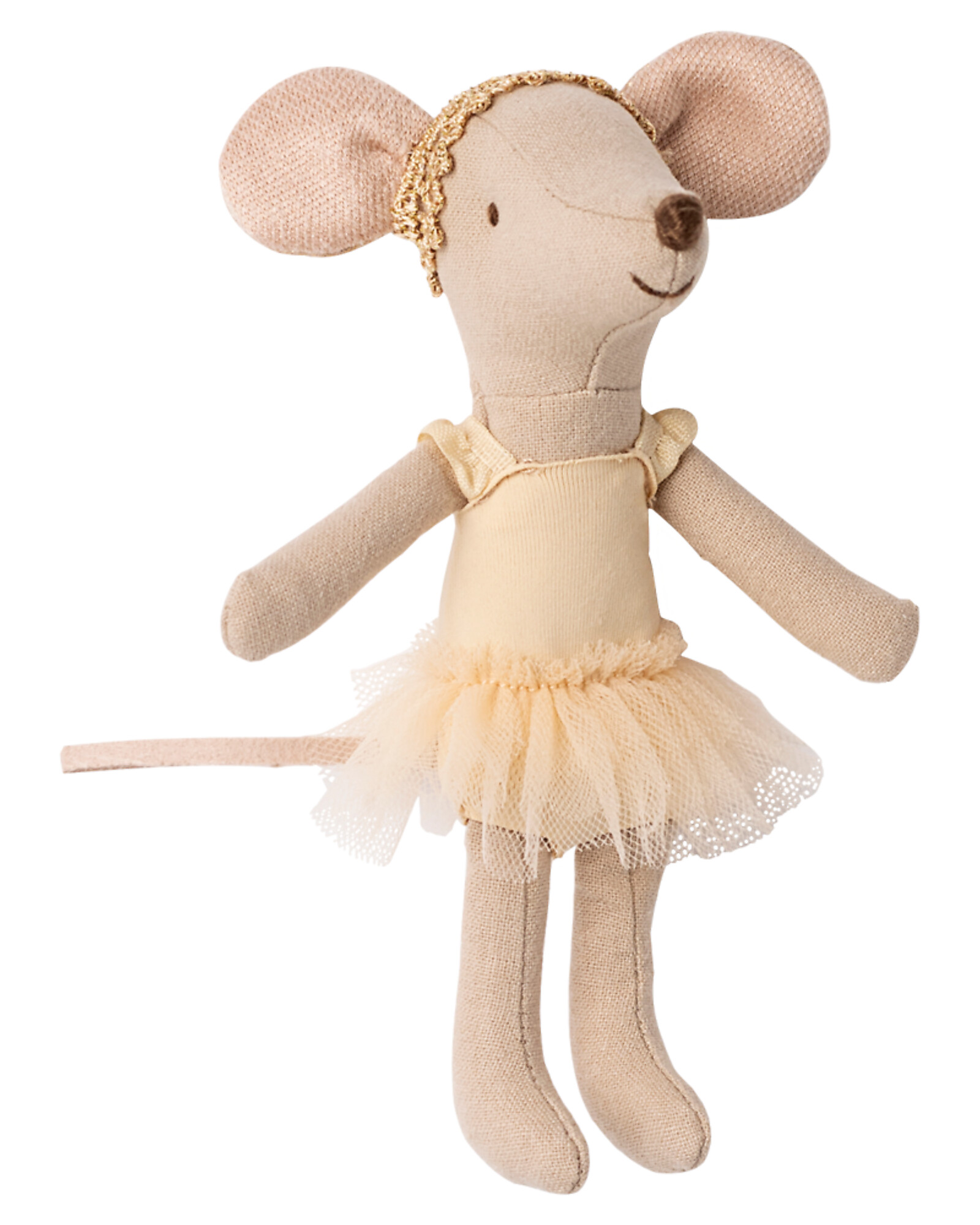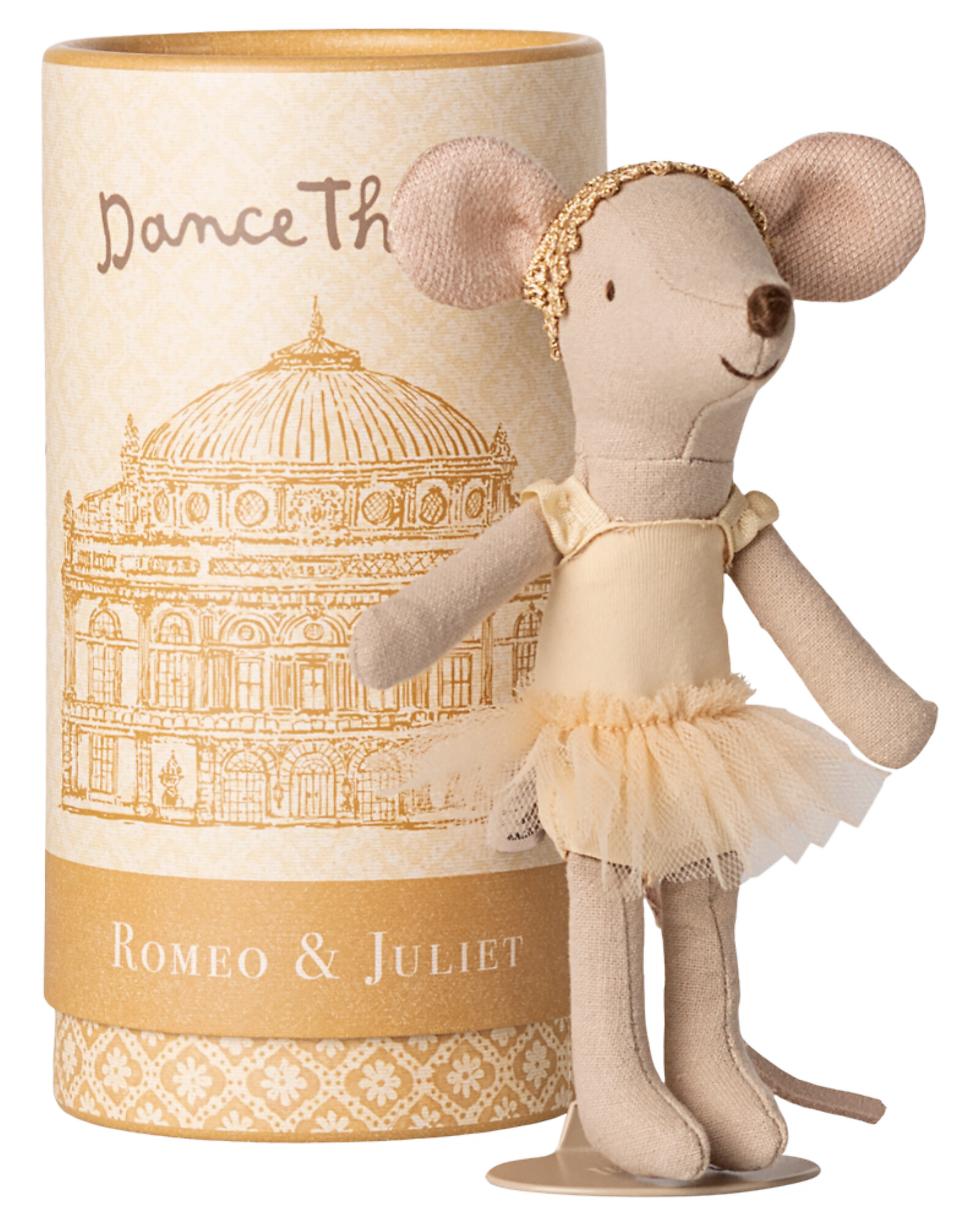 A sweet big sister mouse transformed into a graceful ballerina ready to captivate with every step. Her delicate and refined heather-colored tutu and elegant headband complete her dreamy look, inviting her to dance with lightness and magic for endless hours.