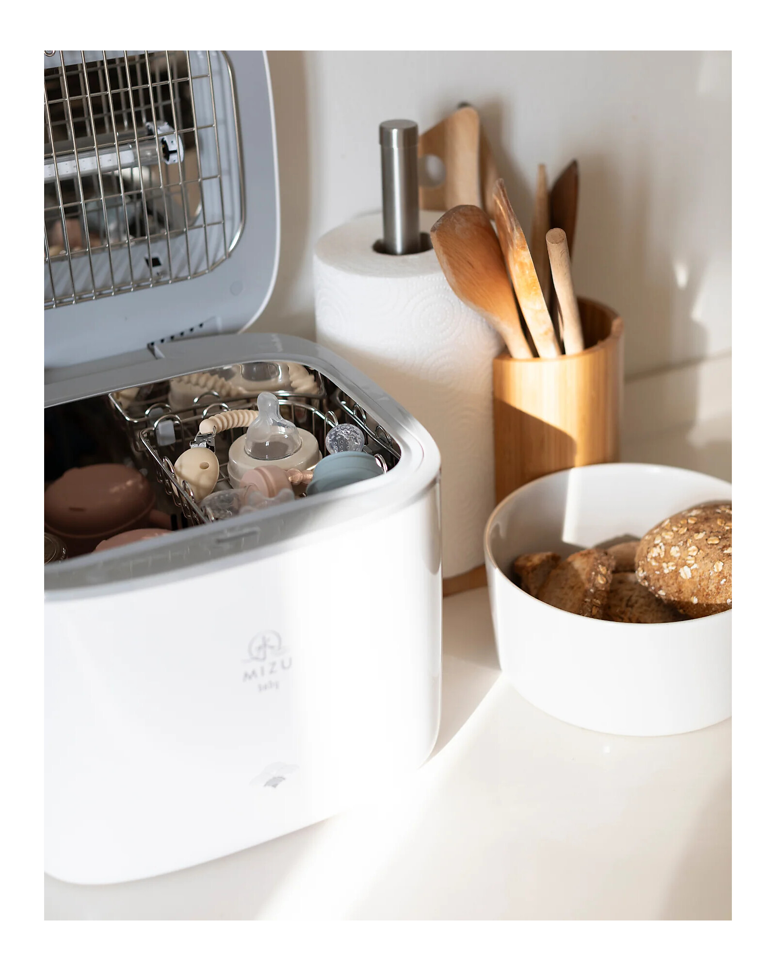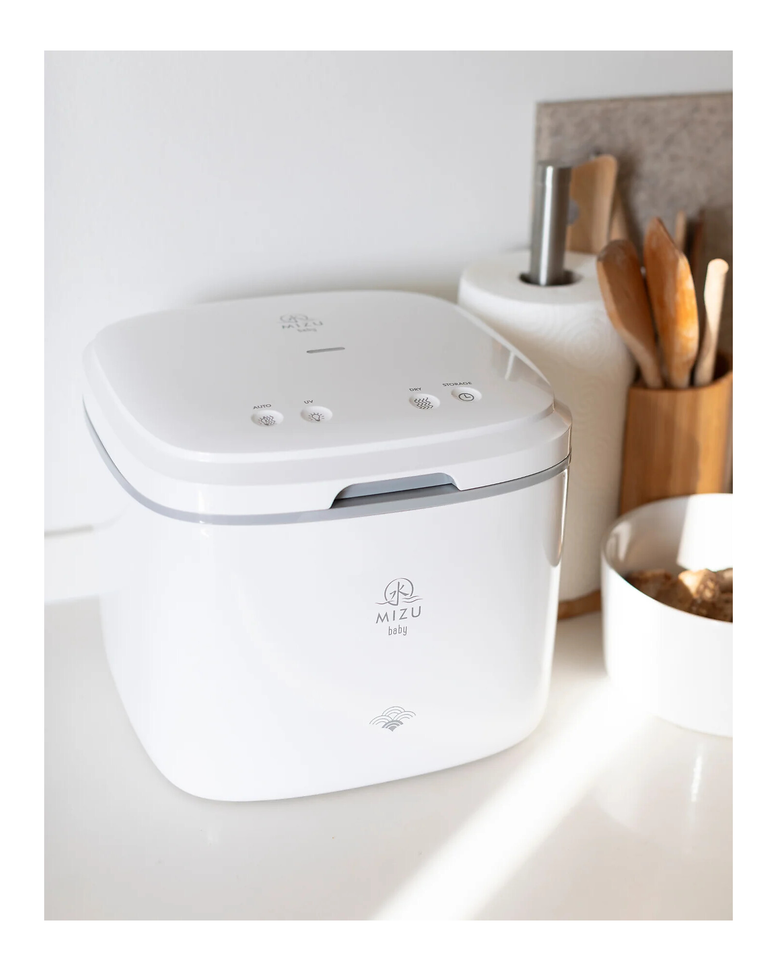 Discover Airi UV Pro Led by Mizu Baby, which eliminates 99.9% of bacteria in just a few minutes, without the need for water or chemicals. Thanks to the LED UVC lamp, it provides effective sterilization for bottles, accessories, and everyday items, with the ability to keep up to 72 hours of hygiene. Easy to use with a touch panel and digital display, it is also very spacious, capable of holding up to 8 bottles. Perfect for ensuring maximum safety and hygiene for your little ones, every day. An essential ally in baby care!