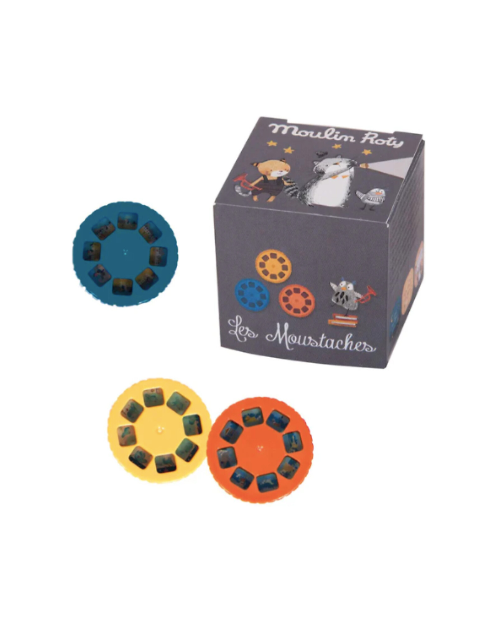 Follow the adorable cats on their adventures with the Cat Story Projector Torch by Moulin Roty! This fun projector allows you to tell fantastic stories by projecting scenes onto the walls of your room. Simply insert one of the included discs, turn off the lights, and let the show begin! Each disc contains 8 scenes featuring cats, which can be easily changed by rotating the disc, allowing little storytellers to guide their audience through worlds full of animals and fantastic characters.