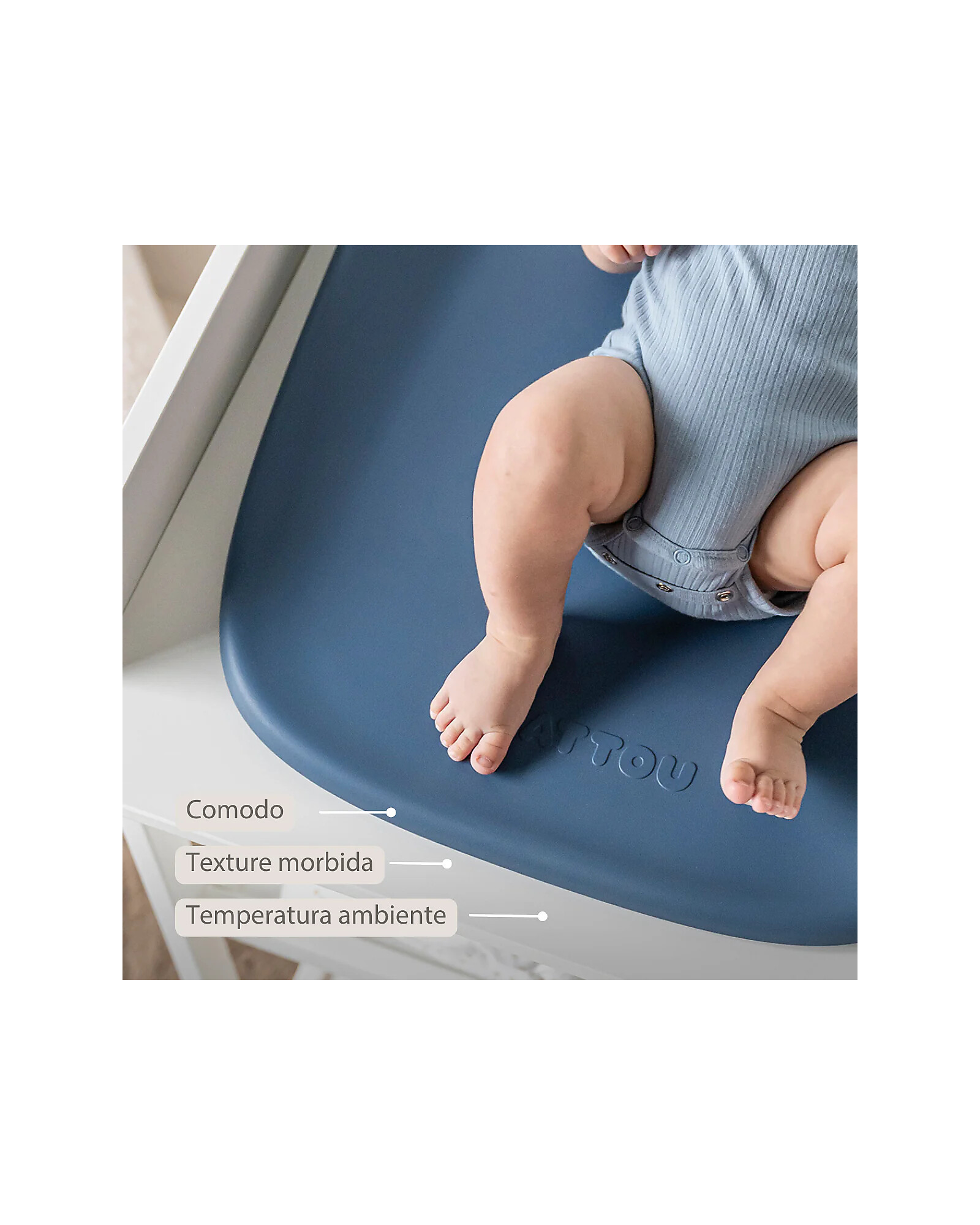 The PU foam quickly adapts to room temperature, mimicking the softness of the baby's skin and ensuring comfort even during nursing. The ergonomic design offers added comfort and stability during diaper changes. The slightly inclined surface and raised edges keep your baby in a safe position, preventing them from rolling over. Additionally, all liquids are directed away from the baby's head, preventing them from pooling at the bottom of the changing mat. After use, the mat can be easily cleaned with a damp cloth, soap, or disinfecting alcohol. The Softy changing mat is BPA-free and complies with European safety and quality standards.