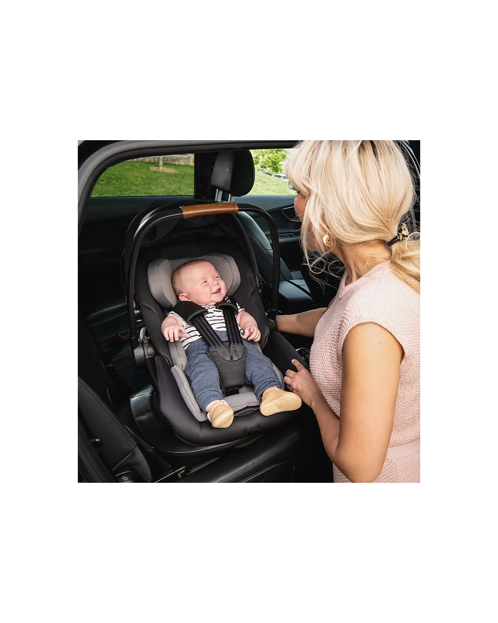 - High-strength plastics and handle that in case of collision transfers part of the force into the shell: your baby's head is thus protected