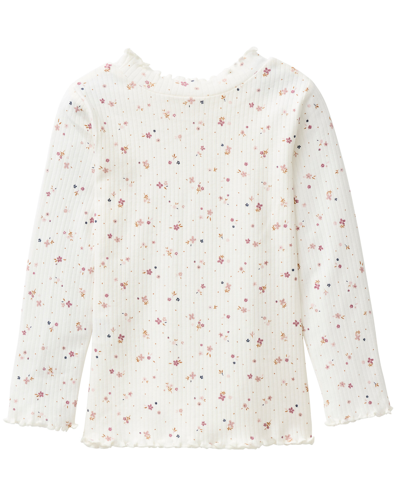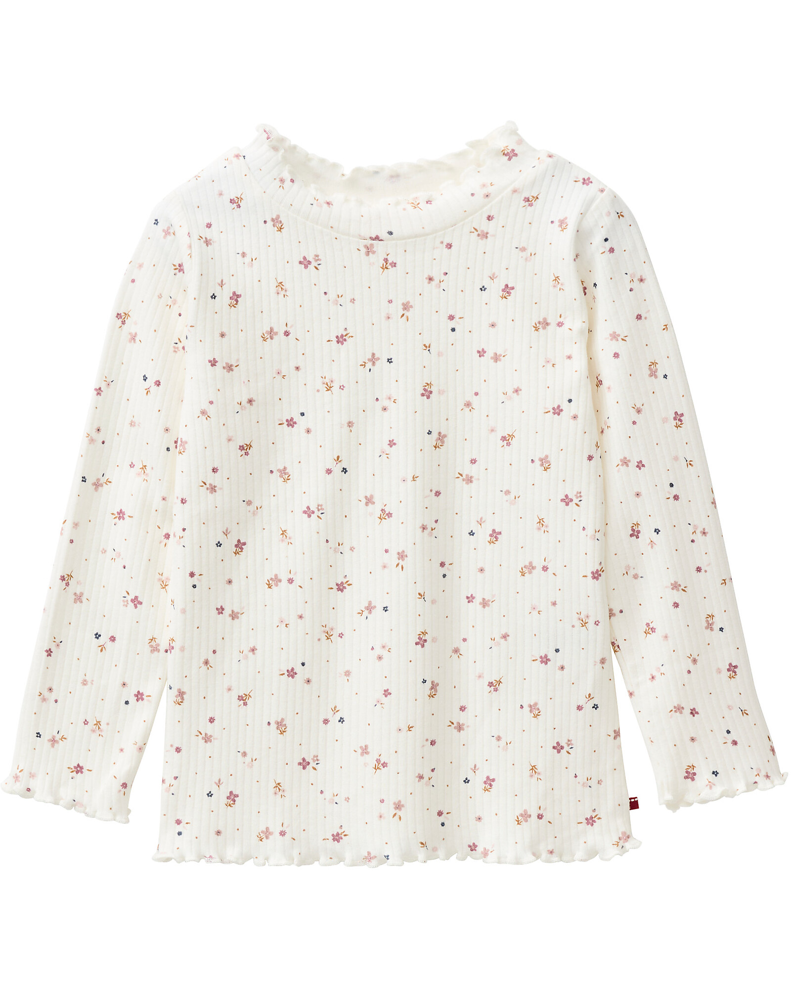Long-sleeved sweater with flowers - cream - ruffle edges - cotton GOTS