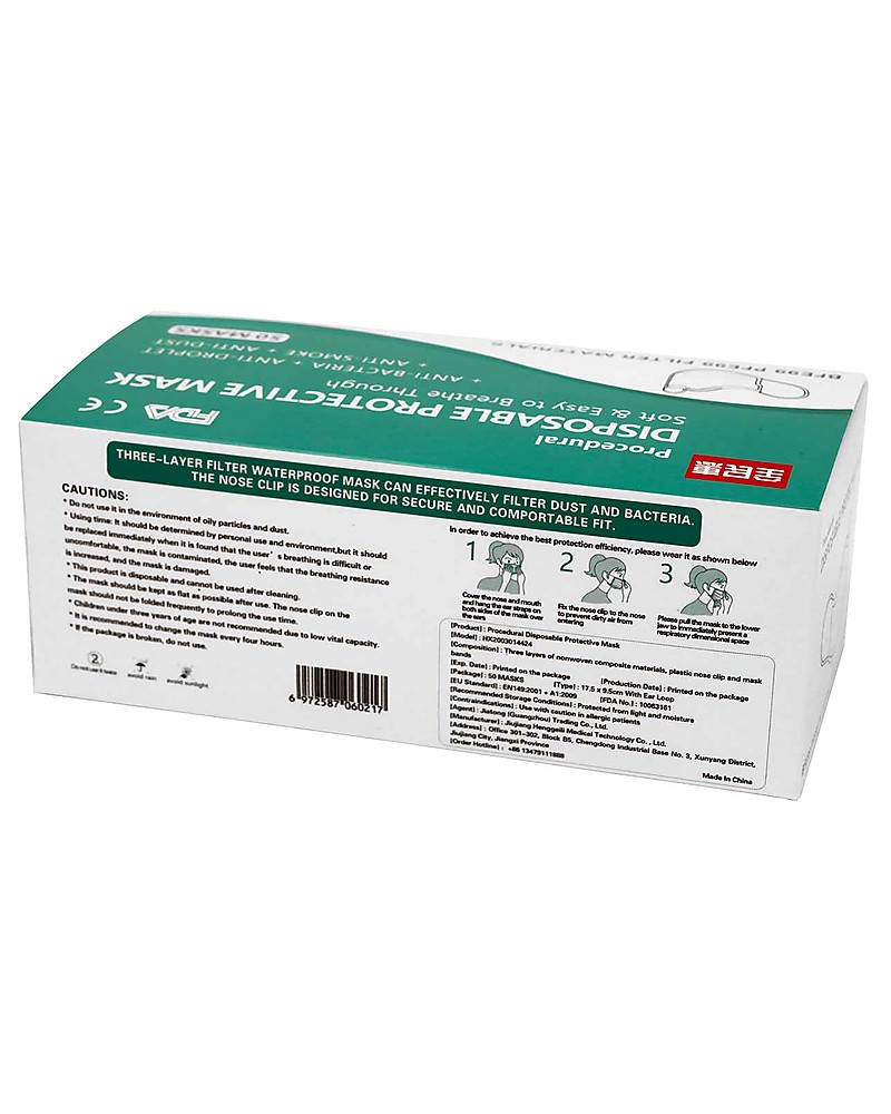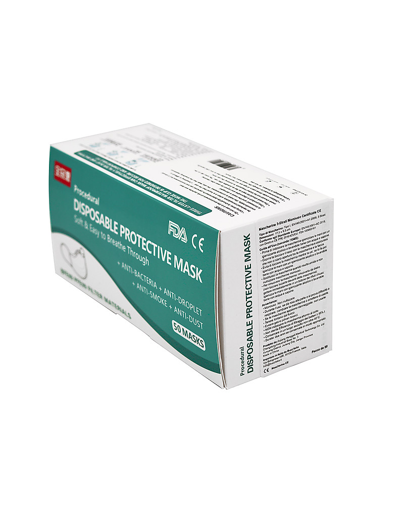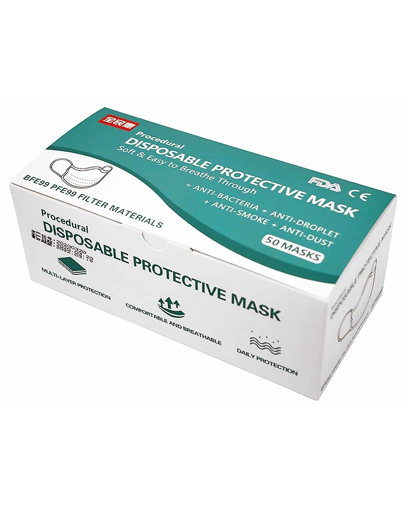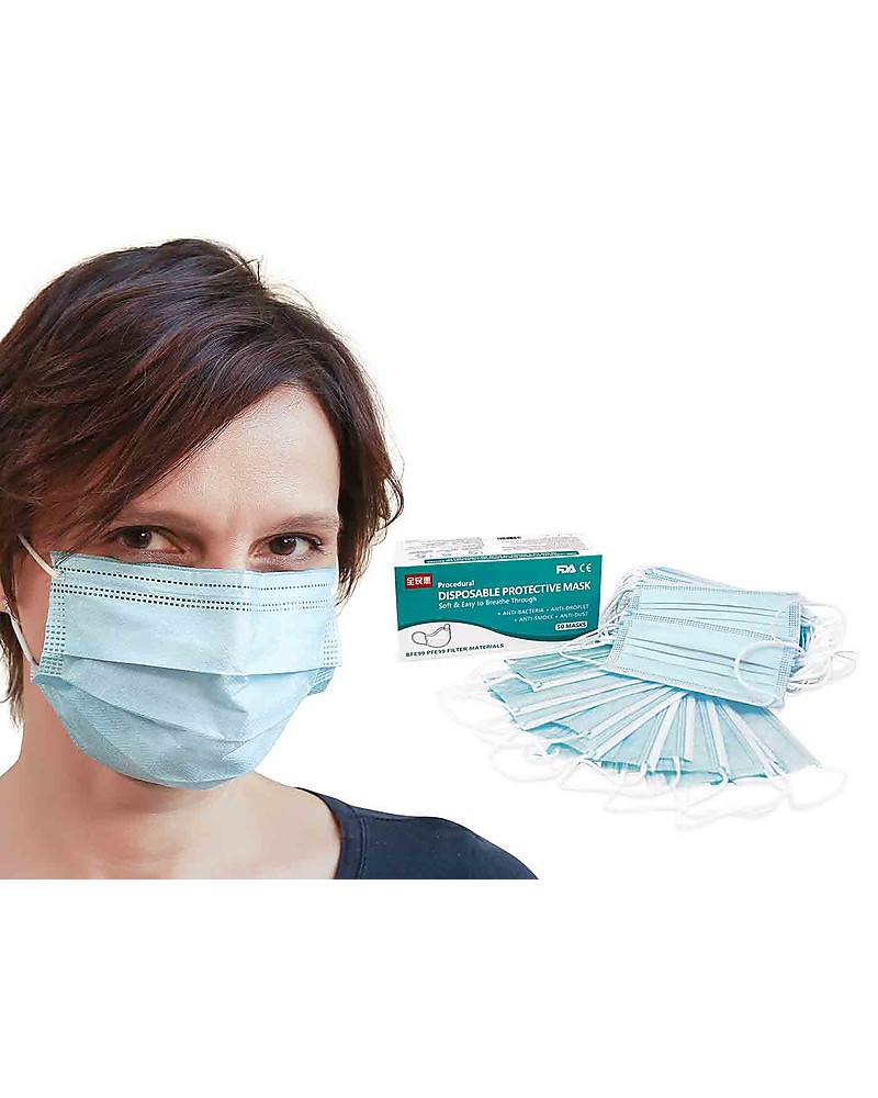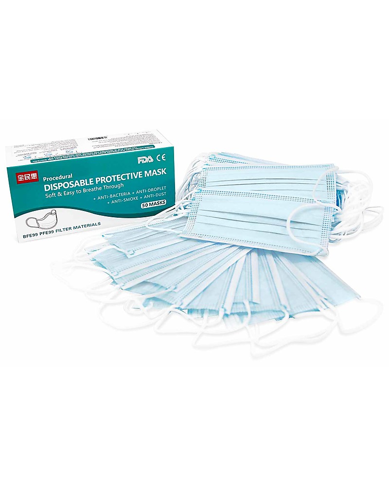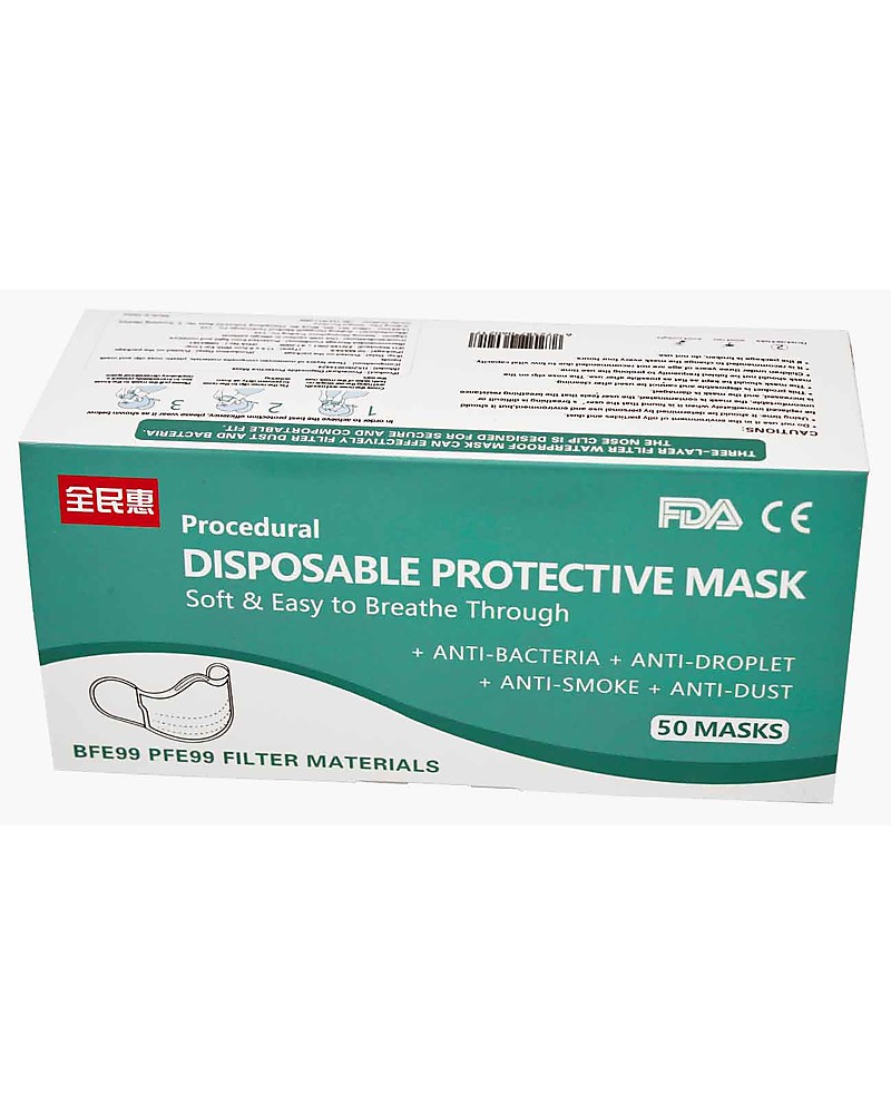 - Pack of 50 disposable 3-ply face Masks with ear loops
