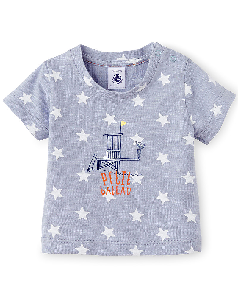 Sweet starry pattern on a grey background for this super sweet T-Shirt by Petit Bateau. Made in 100% pure cotton, it is fresh and breathable, perfect for summer!