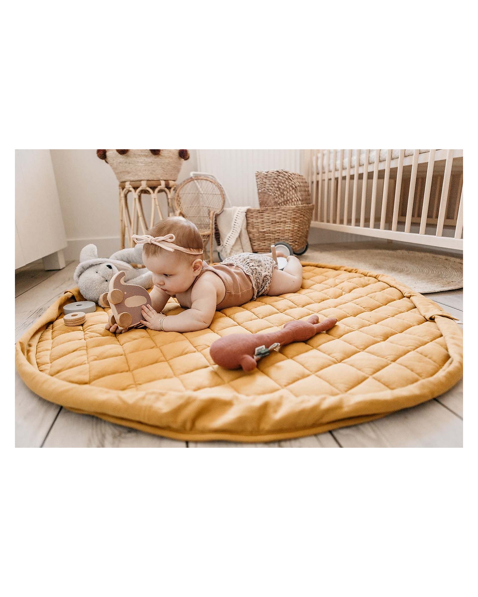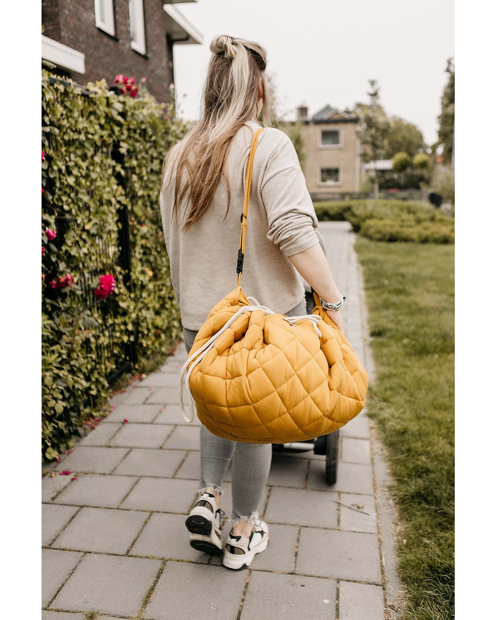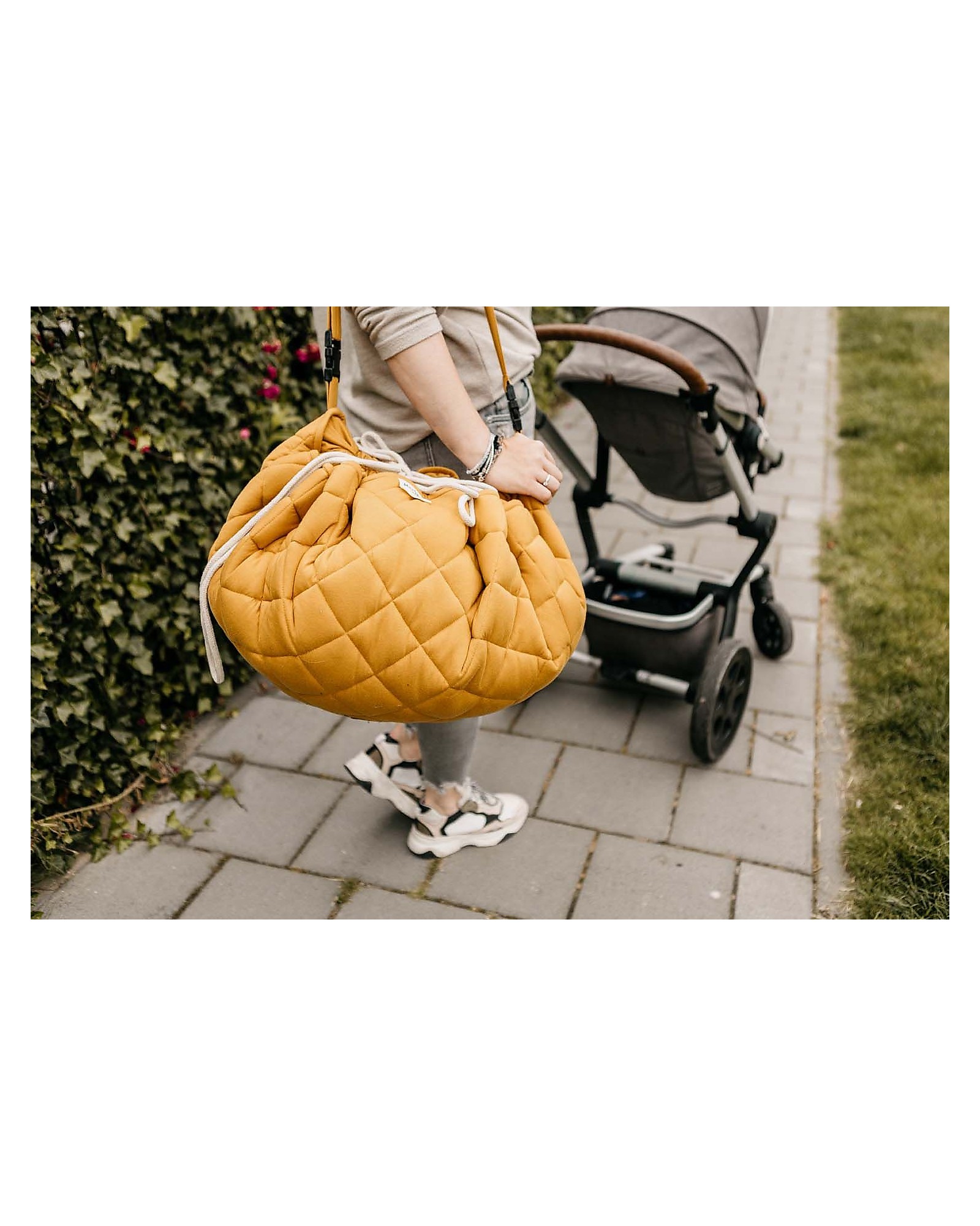 3 in 1 Storage Bag & Playmatt in cotton - Mustard Chai Tea