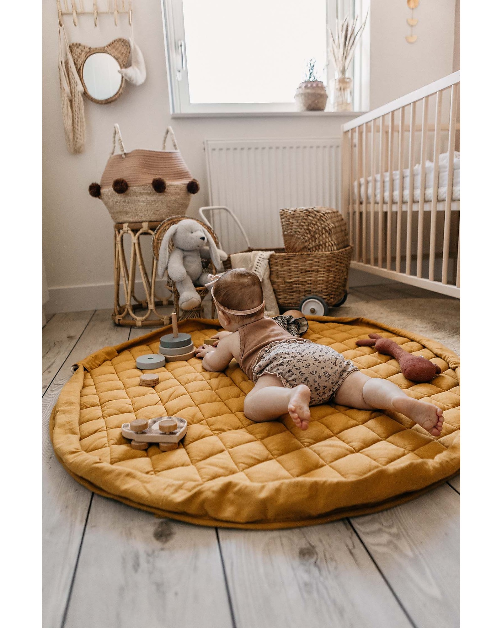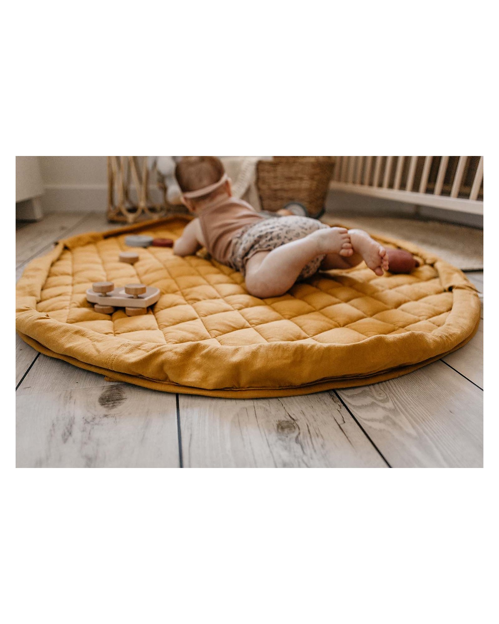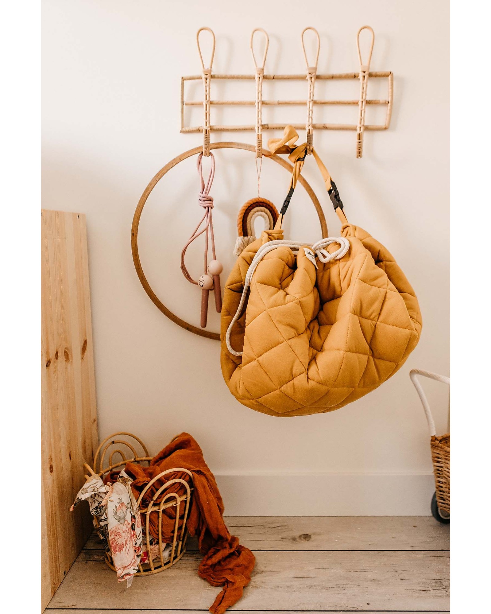 3 in 1 Storage Bag & Playmatt in cotton - Mustard Chai Tea
