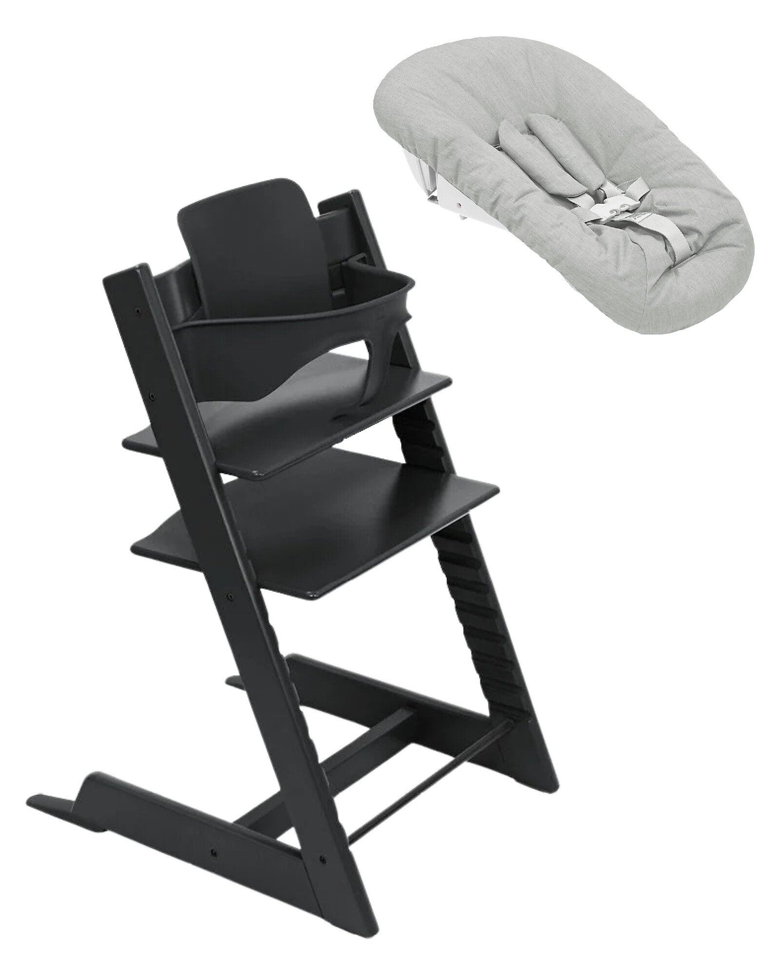 Beech Wood Tripp Trapp Evolutive Chair Black + Baby Set + Newborn Set