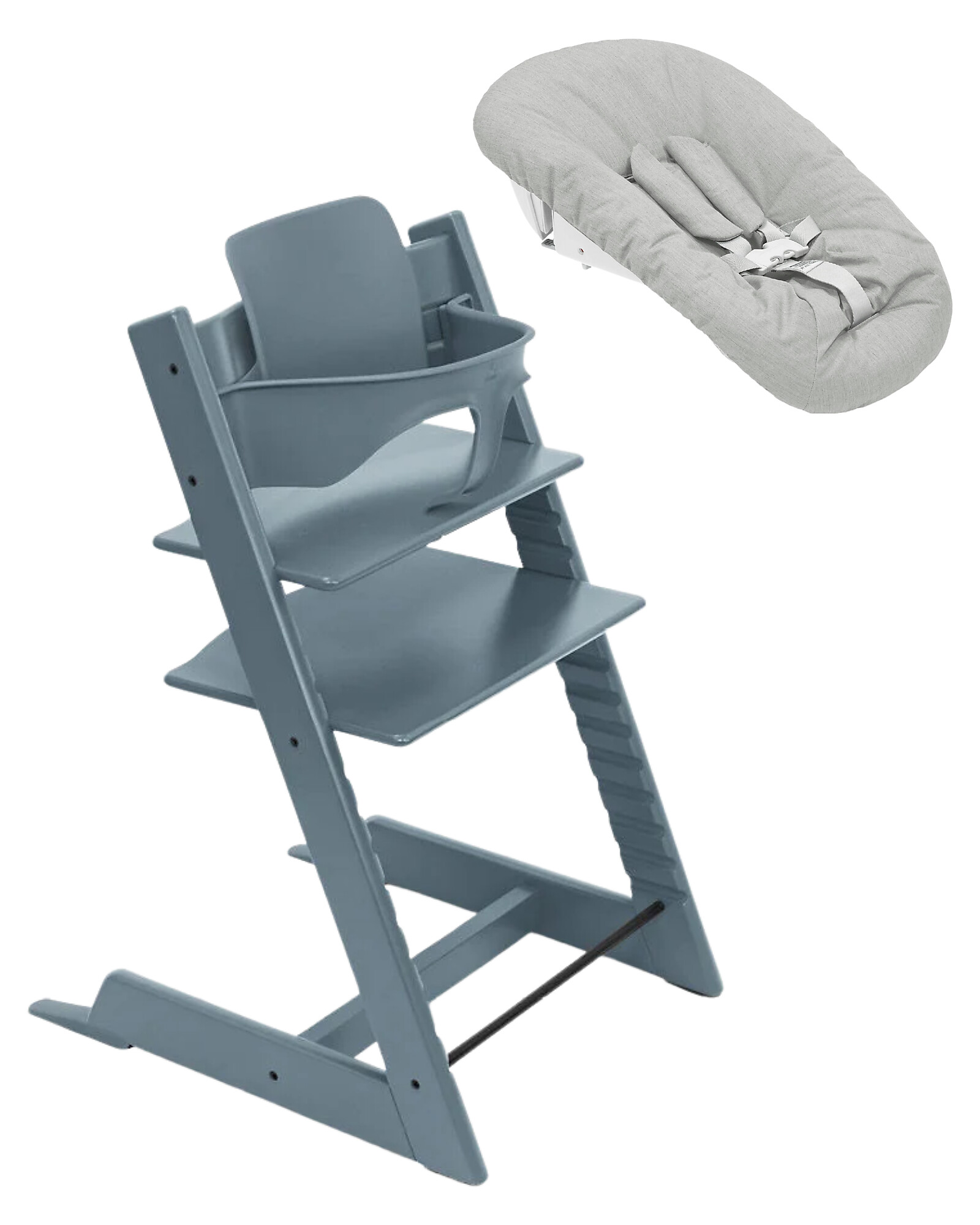 Beech Wood Tripp Trapp Evolutive Chair Fjord Blue + Baby Set + Newborn Set