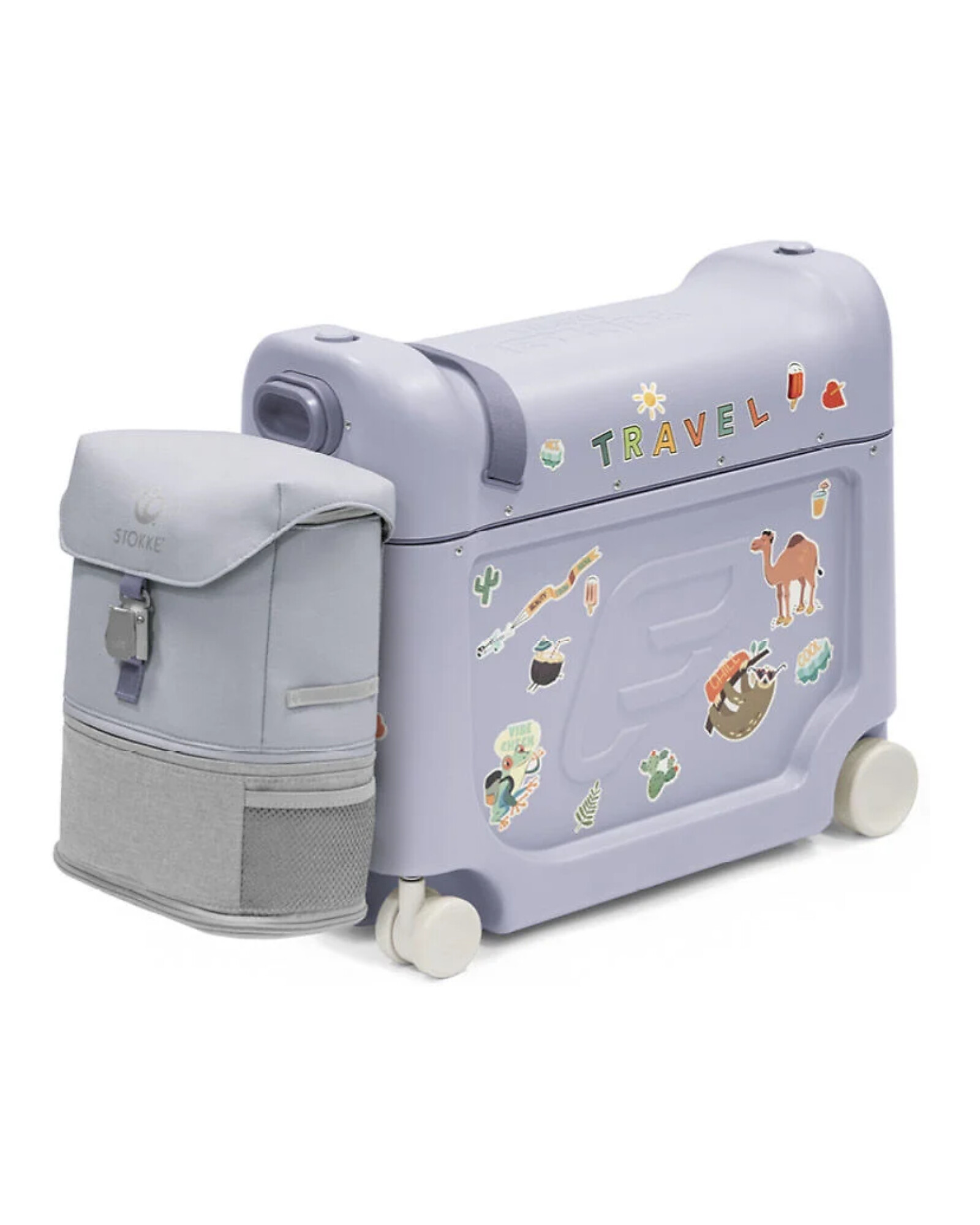The JetKids Travel Set by Stokke consists of two essential accessories for little travellers: the ride-on suitcase BedBox™ (which works as a carry-on, a ride-on seat and even an in-flight bed) and the BackPack™, expandable and designed for explorers aged 2 to 7.