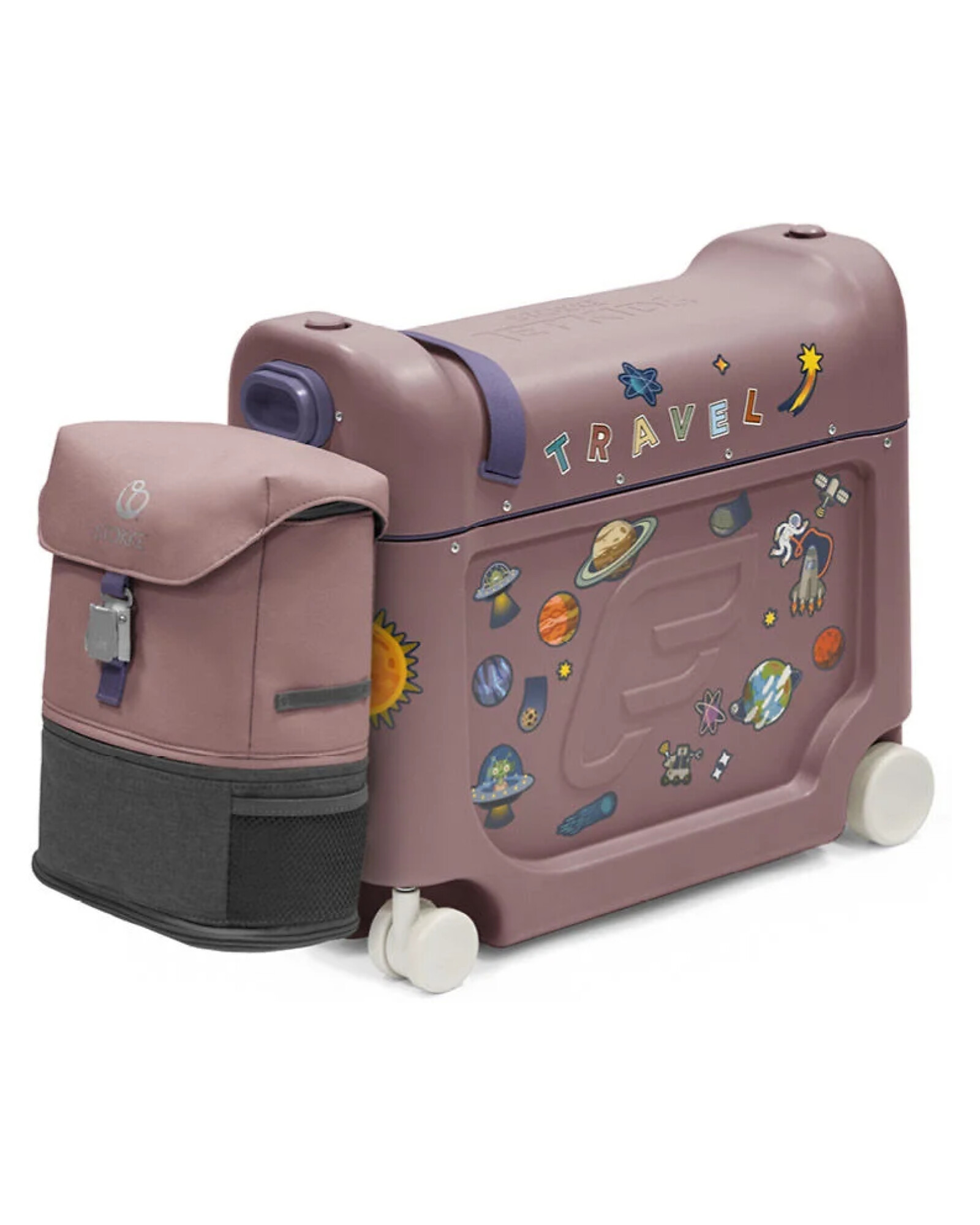 The JetKids Travel Set by Stokke consists of two essential accessories for little travellers: the ride-on suitcase BedBox™ (which works as a carry-on, a ride-on seat and even an in-flight bed) and the BackPack™, expandable and designed for explorers aged 2 to 7.